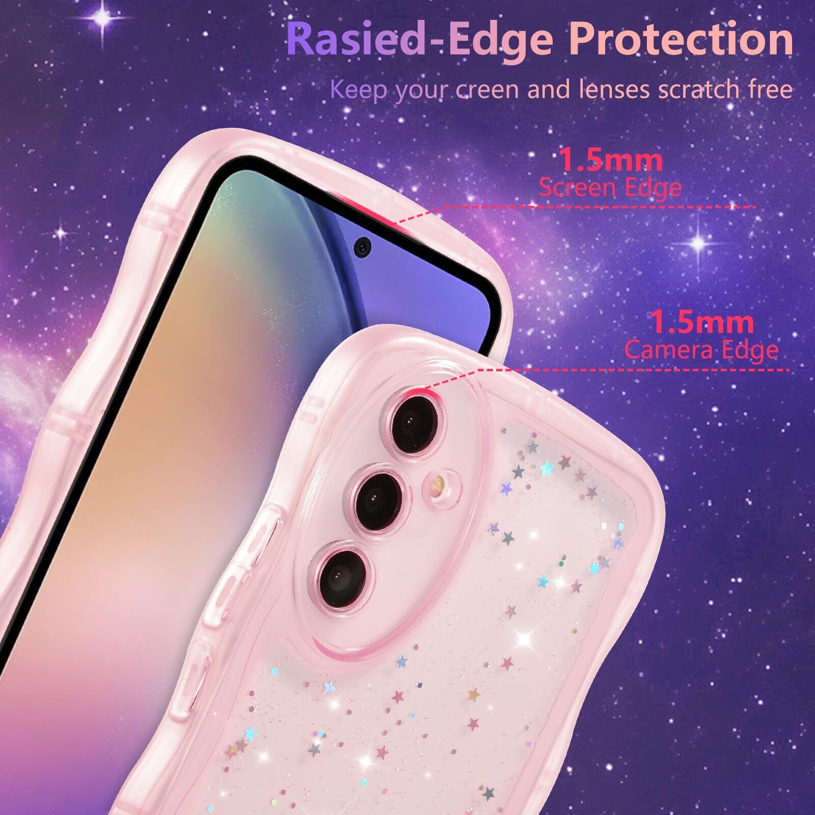 ZTOFERA Samsung Galaxy A54 5G 用波状のケース 透明 クリアケース サムスン ギャラクシー A54 5G ウェーブケース 可愛い おしゃれ キラキラ 星 スマホケース ソフトTPU スターパターン 軽量 耐衝撃 人気 韓国 A54 5G ケース 女子 女性 携帯電話カバー (ピンク)