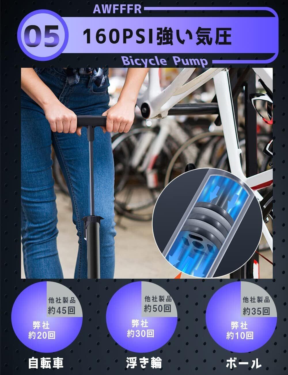 自転車 空気入れ 仏式/英式/米式バルブ対応【160PSI/11Bar】 くうきいれ 自転車 足踏み式 携帯ポンプ ロードバイク くうき空気入れ 空気入れ コンパクト 小型 軽量 非電動 フレンチバルブ 、電動車、自転車、バイク、ボール、球、針、浮き輪用 日本語取扱説明書付き