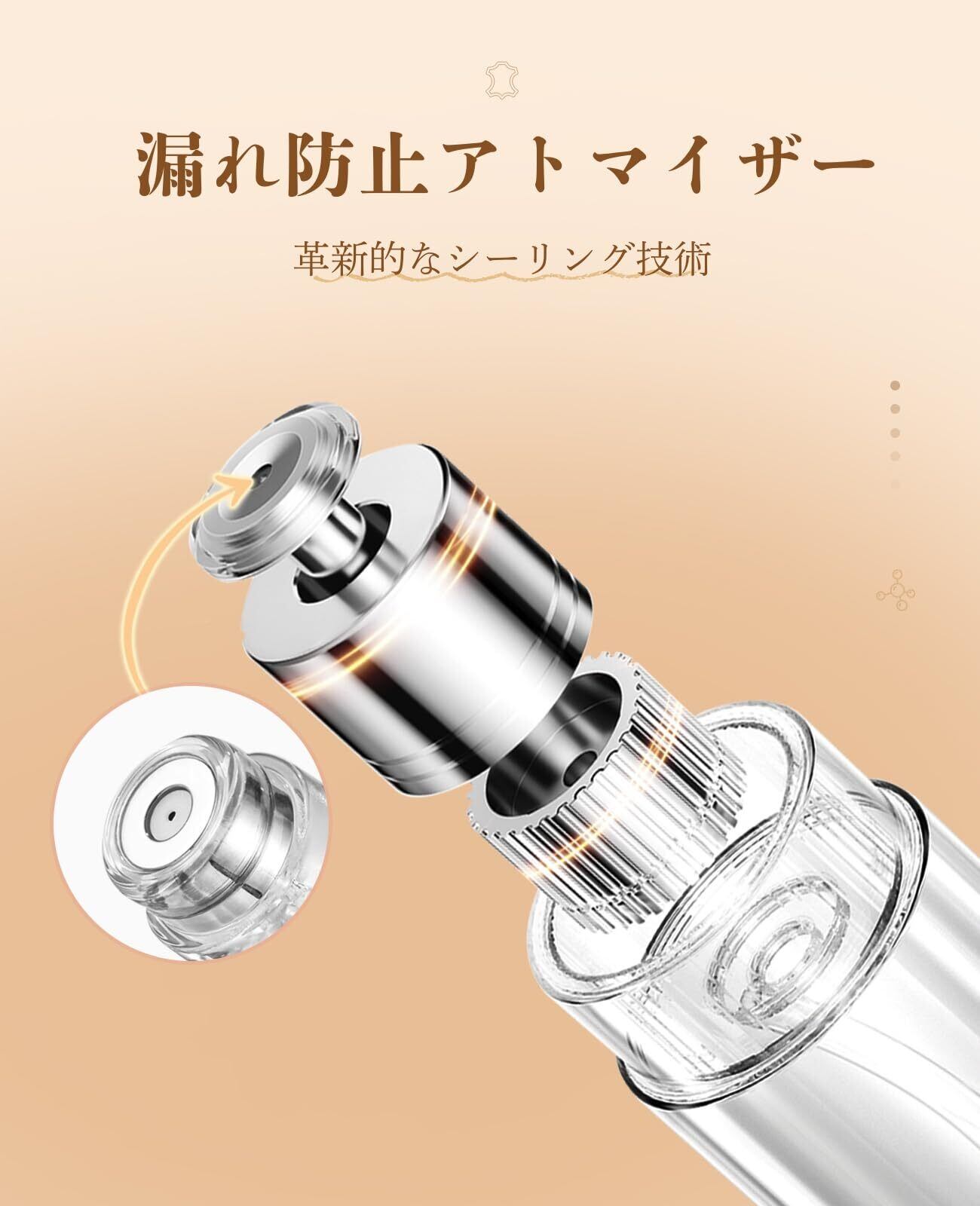 【合金外殻・耐久性と高級感】アトマイザーには高品質な合金外殻を採用し、軽量でありながら耐久性に優れ、高級感あふれるデザインを実現しました。日常使いはもちろん、旅行や仕事の場面でもおしゃれに演出できます。
