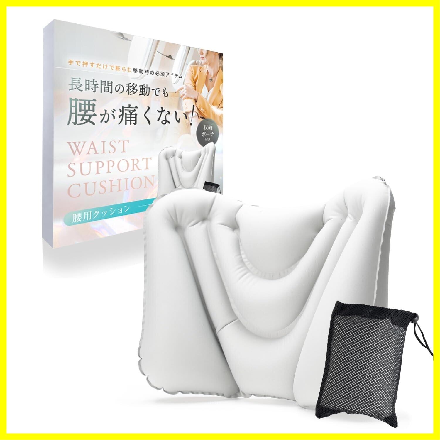 【【選ばれる理由】口を付けずに膨らむから衛生的。口紅を塗られる女性の方に特におすすめです!エアー式で軽量コンパクトに収納できます。旅行バッグやビジネスバッグの中に入れても邪魔になりません。人間工学に基づいた腰をしっかり包み込んでくれる形状が特徴です。