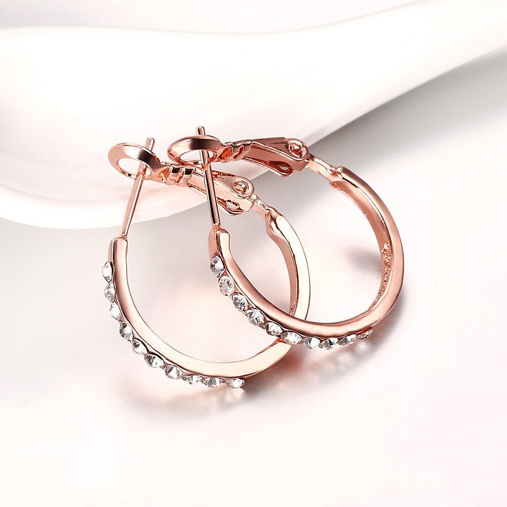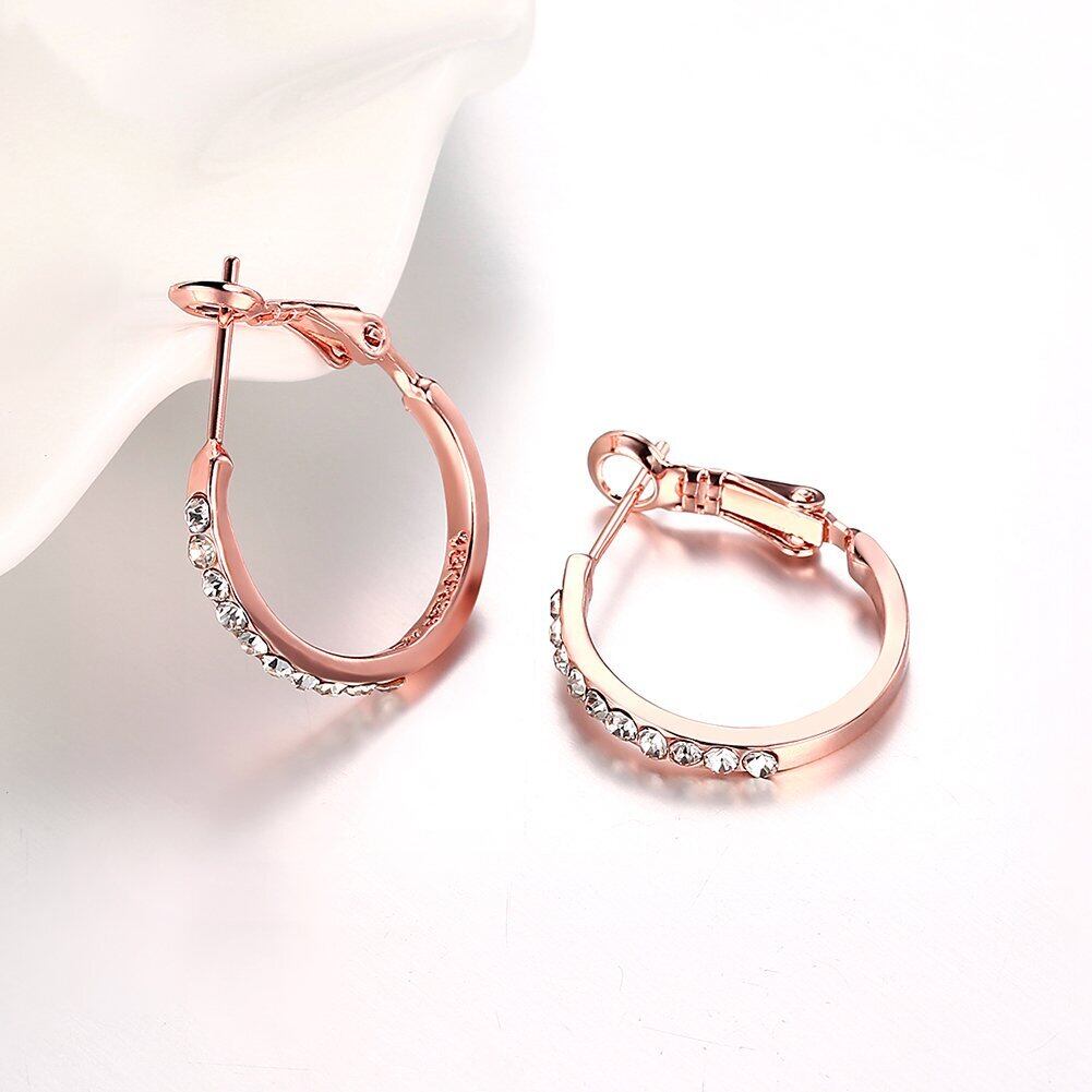 Rockyu ジュエリー ブランド 人気 フープピアス レディース 18k ピンクゴールド カジュアル ラインストーン ファッション アクセサリー