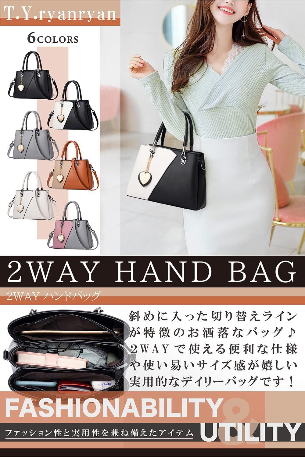 [T.Y.ryanryan] ショルダーバッグ レディース 斜めがけ ハンドバッグ 肩掛け PUレザー ハート 型