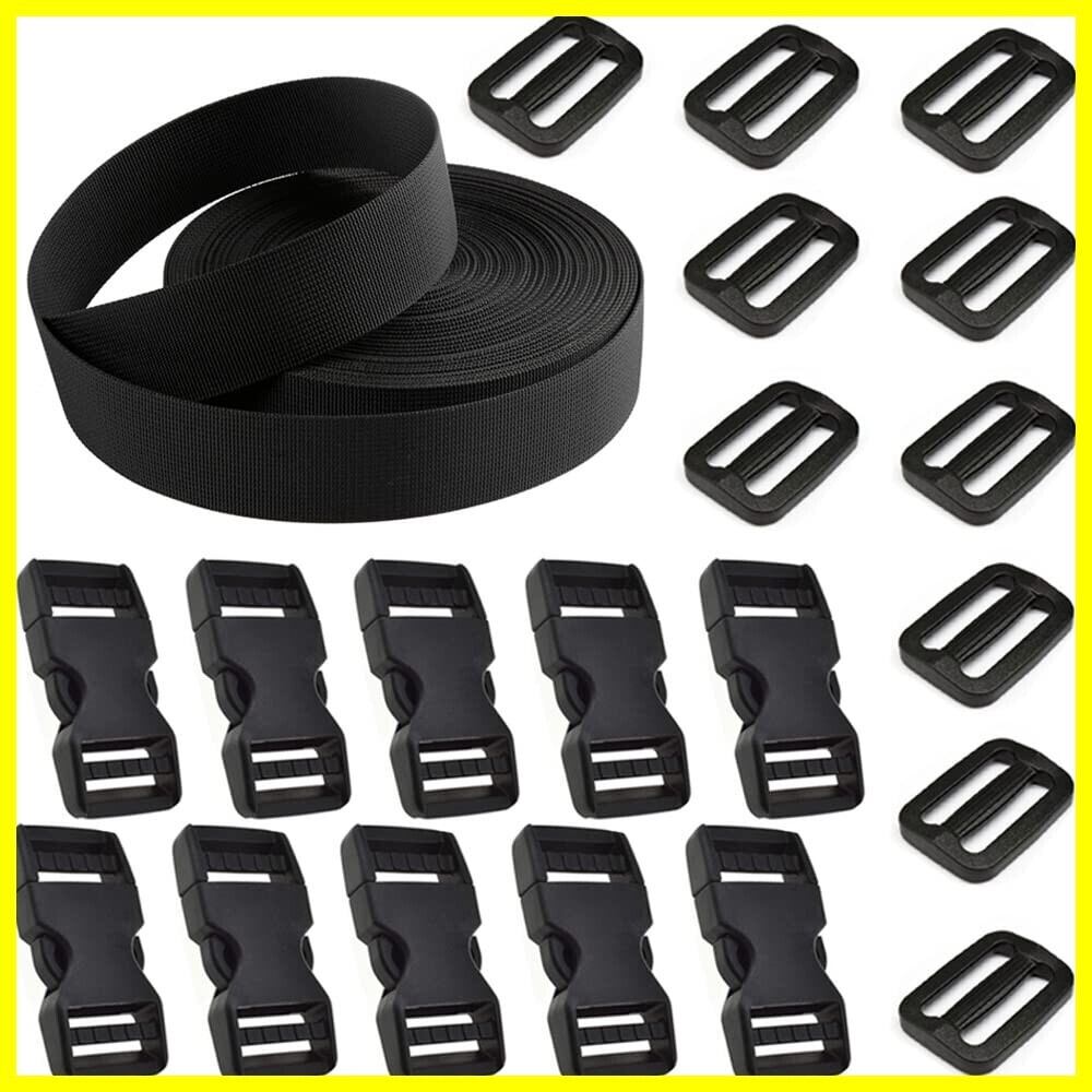 【パッケージ内容】テープアジャスター*10個+25mm幅のPPベルト*10m+サイドリリースバックル*10個