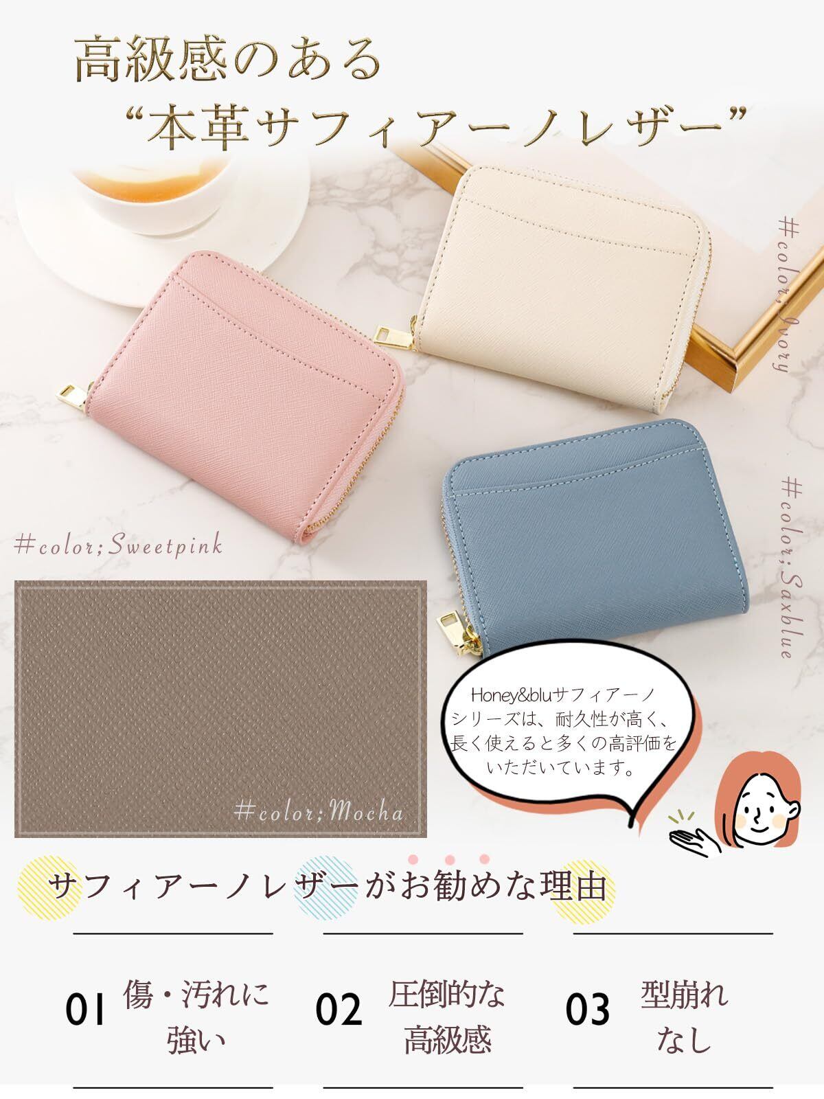 [honey&blue] ミニ財布 カードケース レディース お札が折れない 二つ折り財布 本革 YKKファスナー スキミング防止 (アイボリー×キャメル)