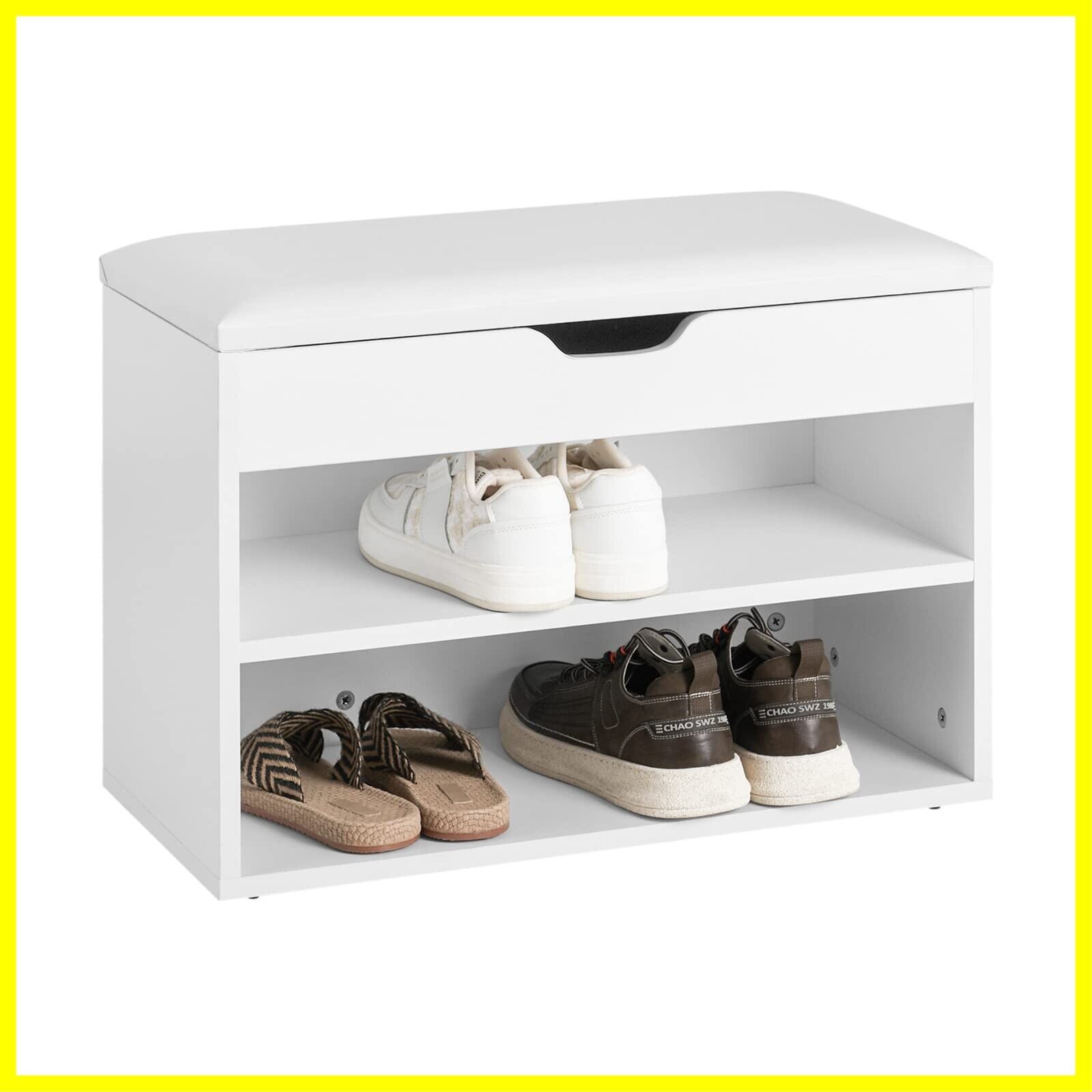 SoBuy 玄関ベンチ シューズラック 下駄箱 靴箱 幅60*奥行30*高さ44cm 小物収納 シューズボックス 収納ベンチ 玄関収納 靴入れ 収納 スツール 靴棚 玄関椅子(FSR25-W)