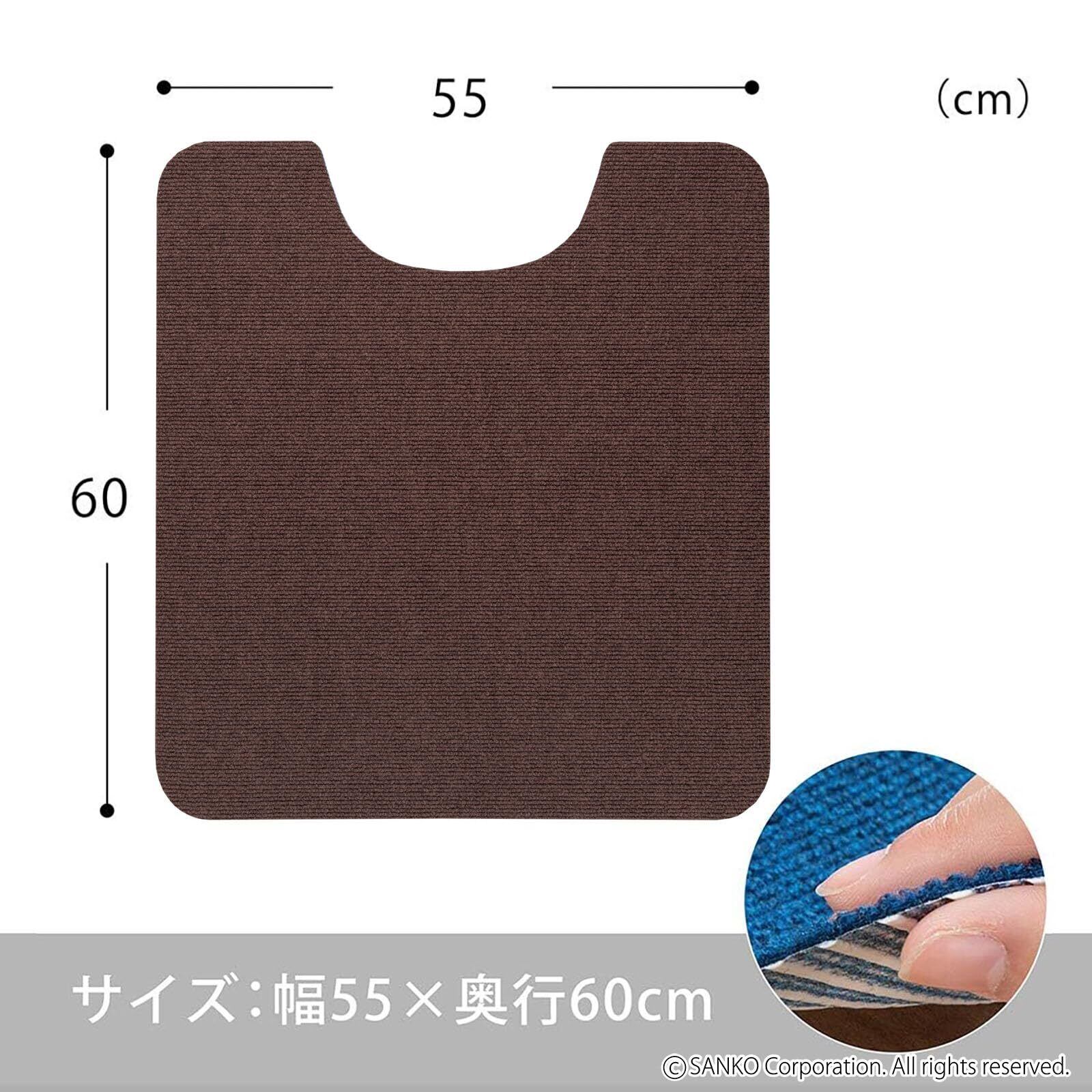 Sanko 【日本製 消臭 洗える】 サンコー ずれない トイレマット 床汚れ防止 おくだけ吸着 ビターブラウン 55×60cm KZ-12