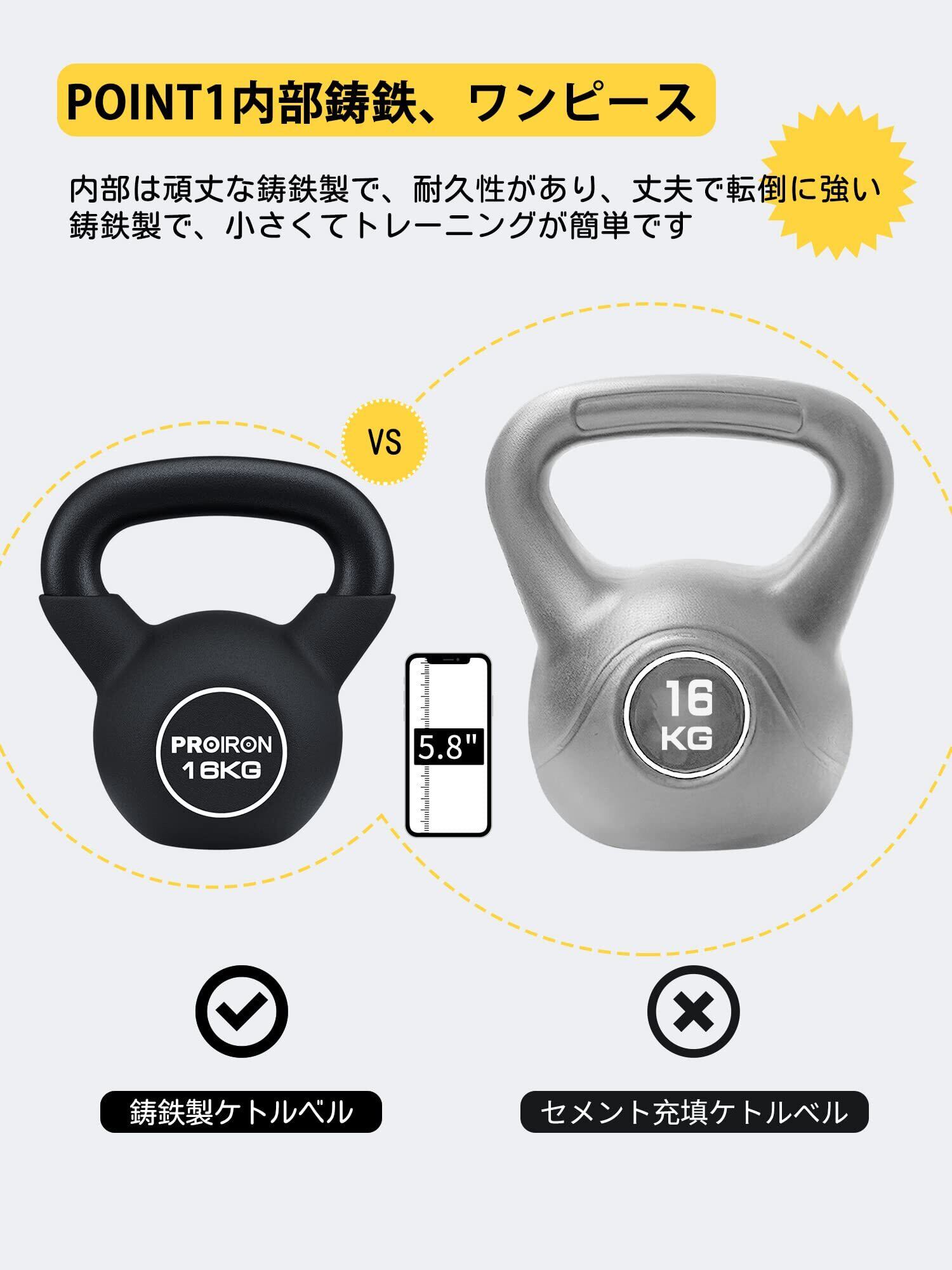 PROIRON ケトルベル ネオプレン kettlebell 一体型鋳鉄製 壶铃 鉄アレイ ケトル 4kg 6kg 8kg 10kg 12kg 14kg 16kg 20kg 重り ケトル