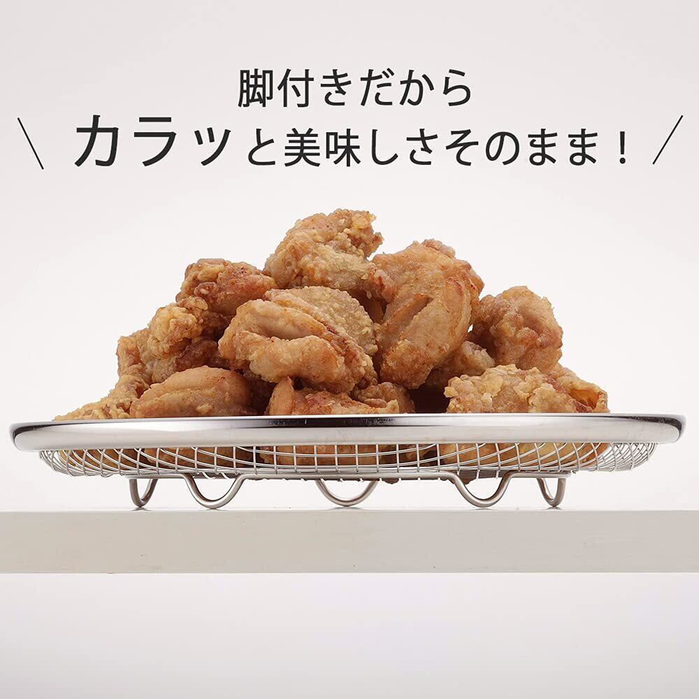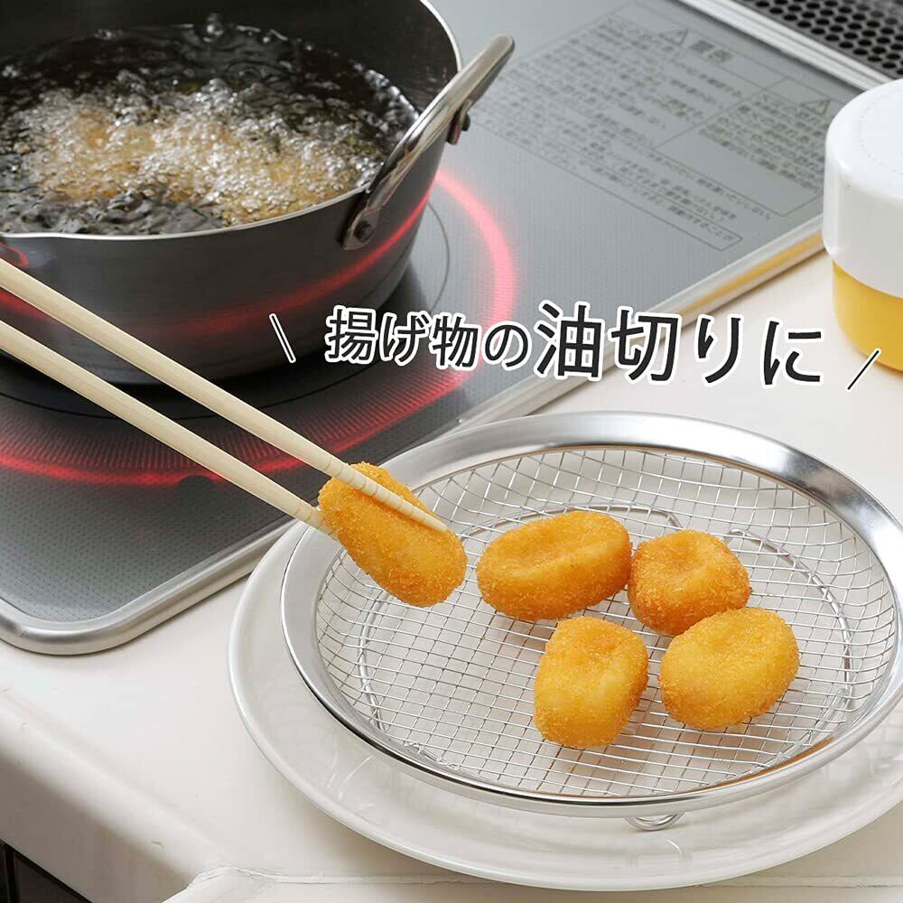 下村企販 ざる カラッと 油切り皿 小 【日本製】 食洗機対応 油切れが早い 大きなアミ目 卓上に出せる 平ザル 揚げ物 野菜の水切り ステンレス 19.6cm ママクック 燕三条 40251