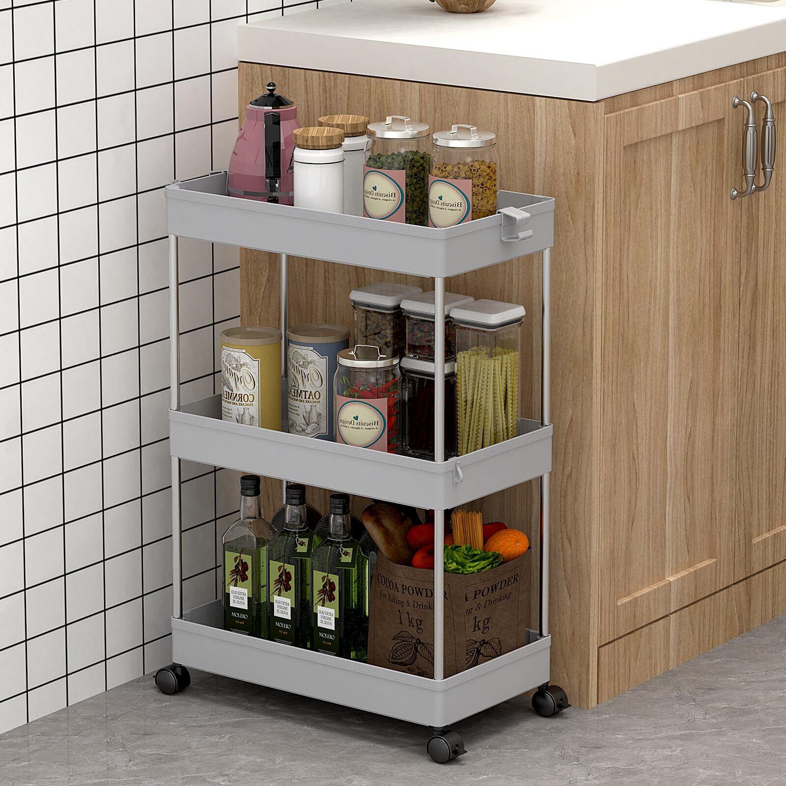 SPACEKEEPER キッチンワゴン スリム 隙間収納 22cm 収納ラック キャスター付き 収納カート ローリングラック おしゃれ 調味料 食品 ペットボトル 小物 台所 洗面所 冷蔵庫横 3段 ビッグ グレイ