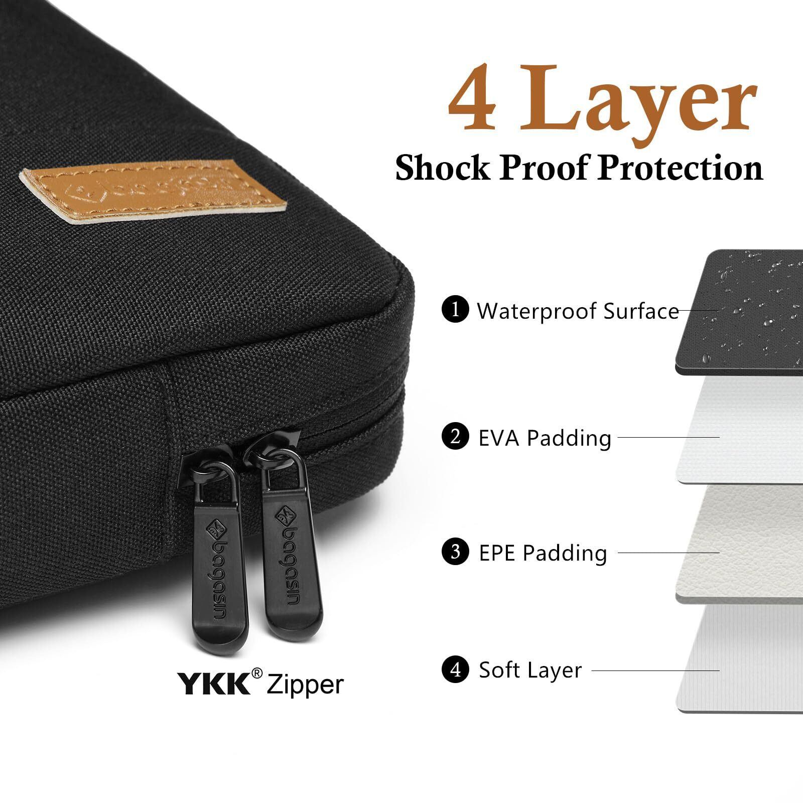【4層保護】: Bagasinラップトップスリーブケースは、あなたのラップトップを4層で保護することを特徴としています:1. 最も外側の防水性と傷に強い生地; 2.スリムで滑らかな形状のための弾性EVAパディング;3.EPEフォームで衝撃吸収を実現します; 4.余分なソフト層