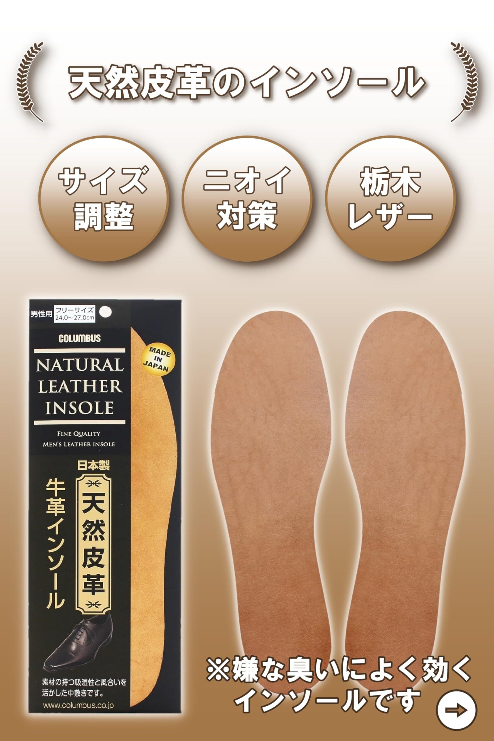 [コロンブス] 栃木レザー採用 吸湿性が良く 足に馴染む 牛革インソール男性 紳士靴のサイズ調整