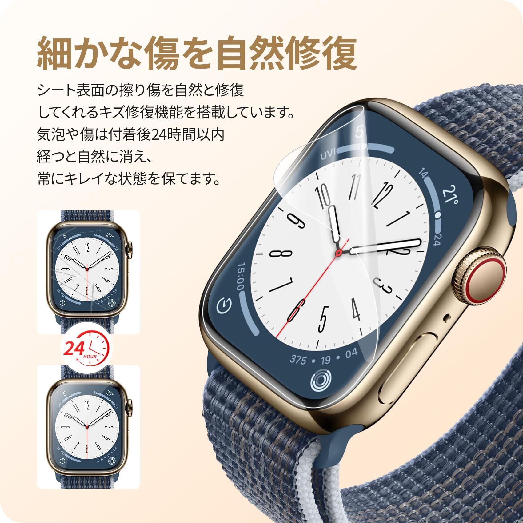 【機種に合った特別なデザイン】apple watch本体の縁まで適度なスペースを残すデザインとなっており、フィルムの剥がれや浮き上がりを防止し、apple watchケースと干渉せずに快適に使えます。]