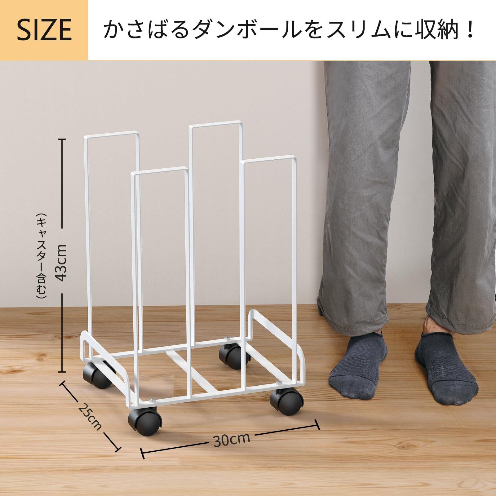 FUNHOO 【段ボールを定位置まとめる】 ダンボールストッカー ホワイト | ダンボールラック ダンボール収納 キャスター付き コンパクト シンプル おしゃれ ダンボール 収納 段ボール ストッカー スタンド 隙間収納 ラック 整理整頓 便利グッズ キッチン 玄関