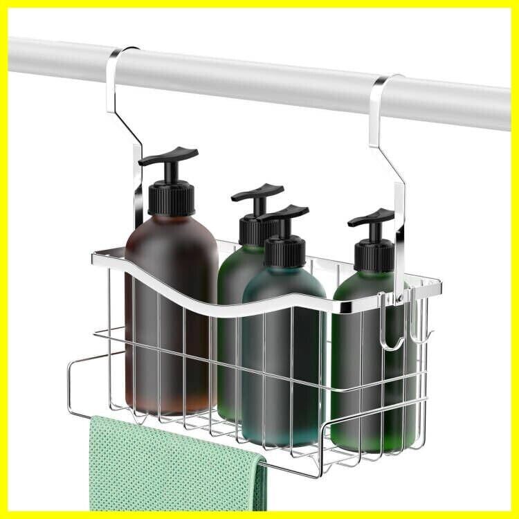 Lycklig 新登场 浴室ラック 吊り下げ式 18/8ステンレス シャンプーラック シャワーラック 組立簡単 バスラック W29XD12XH13cm 風呂 ラック タオルハンガー/小物フック付き おもちゃ収納