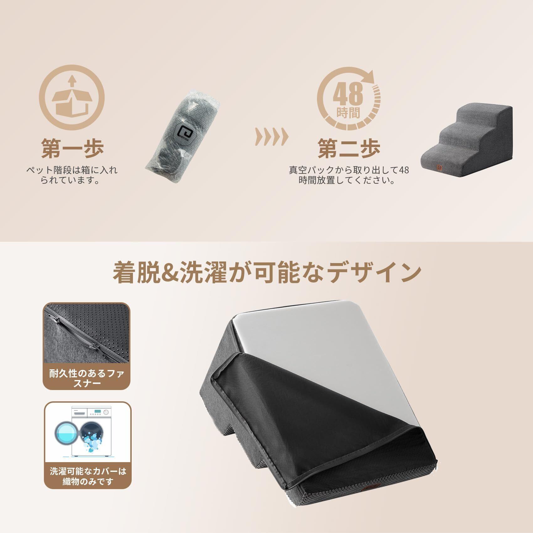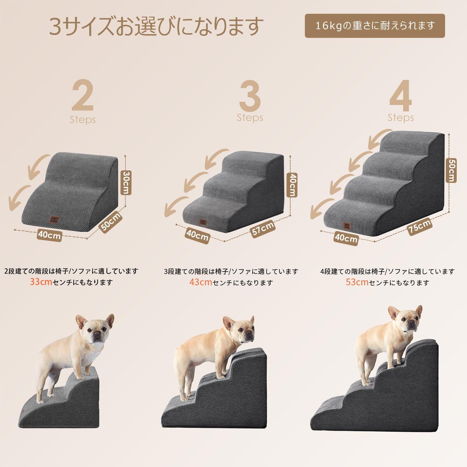 EHEYCIGA 犬 階段 ステップ ペット階段 ドッグステップ 犬 スロープ 高密度 滑り止め付き 安定性 カバー取り外し可能 洗える 小型犬適用 (3段,グレー)
