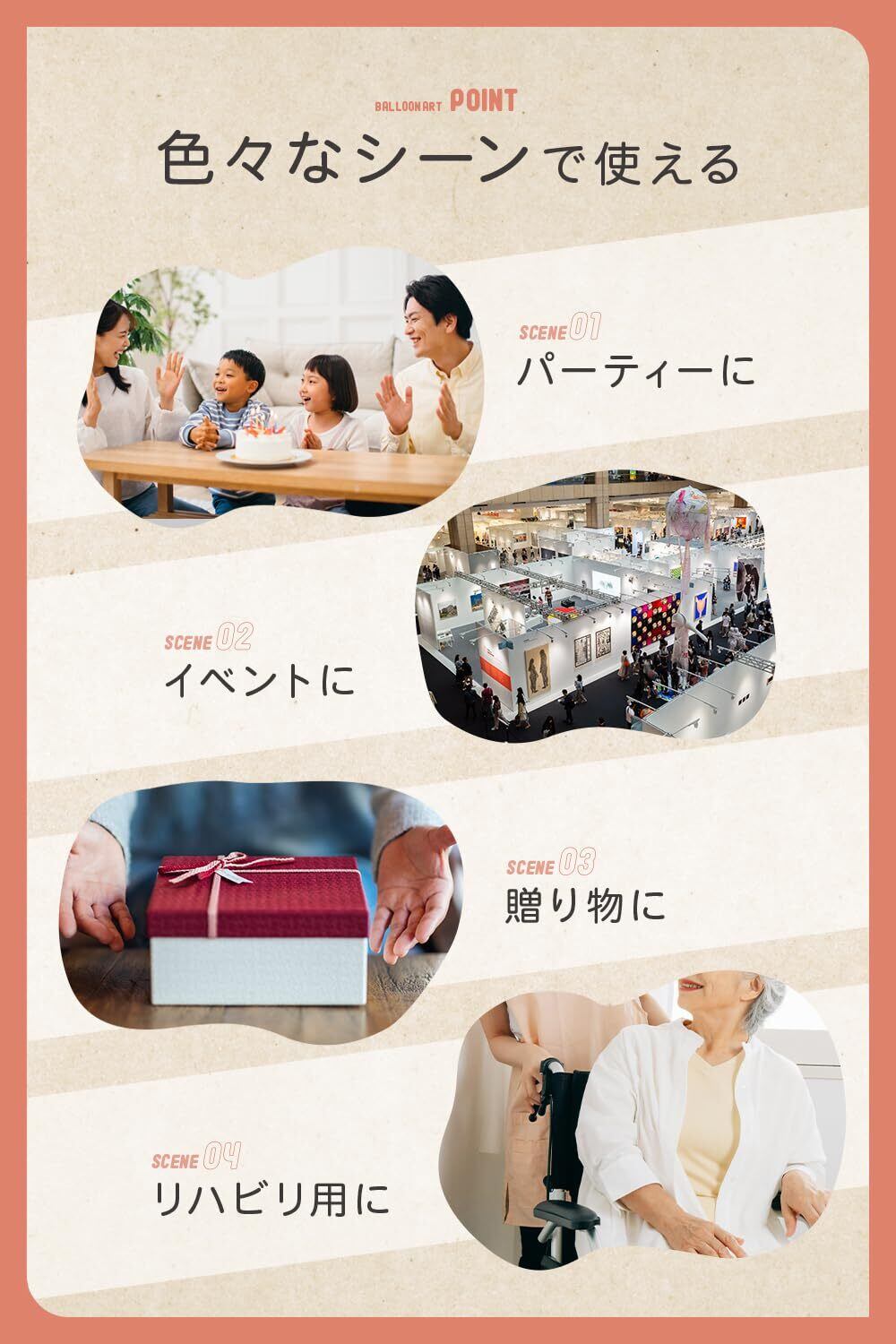 【多様なシーンで活躍】バルーンアートの動物や花、文字など、自由に作れるアイテムとして誕生日パーティー、結婚式、学校イベント、店舗装飾など、あらゆるシーンを彩ります。選べる3つのバリエーションで、イベントのテーマや雰囲気にぴったりの色味を演出できます。