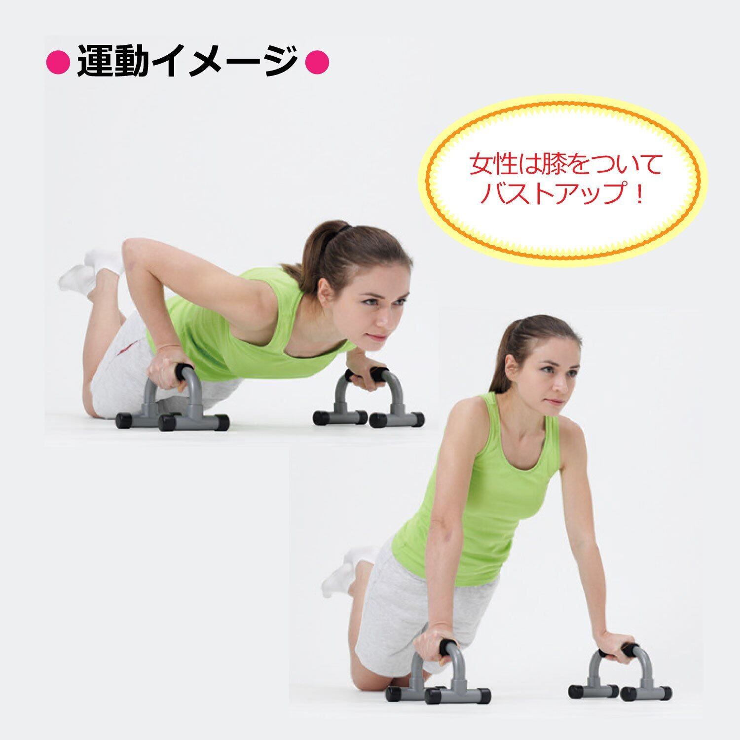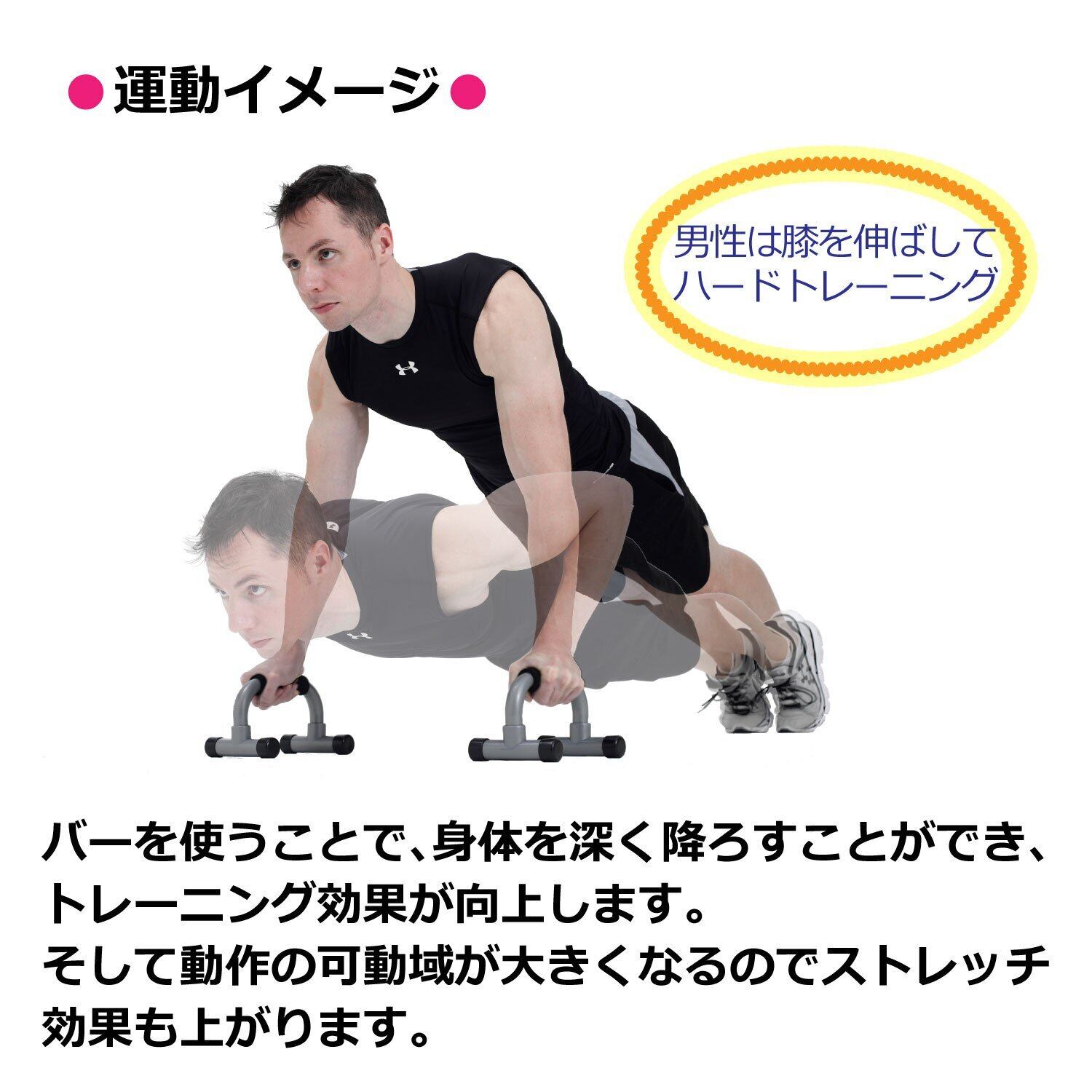 プッシュアップバーは、腕立て伏せをより効果的に、より負担少く行うための運動器具。