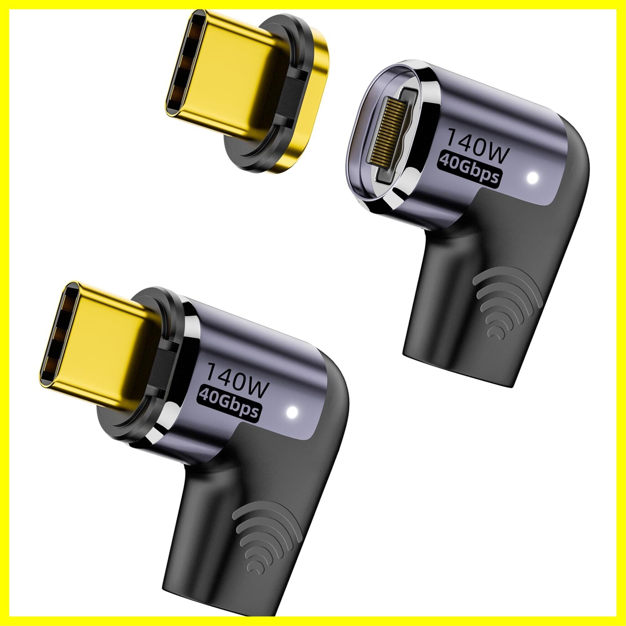 MUXER USB C マグネット アダプタ L字、40Gbps USB4高速データ転送、140W PD急速充電、4K 120Hz / 8K 60Hz HD映像信号伝送、USB4.0 Type-C マグネット、タイプCデバイス対応 (140Wアダプタ2個)