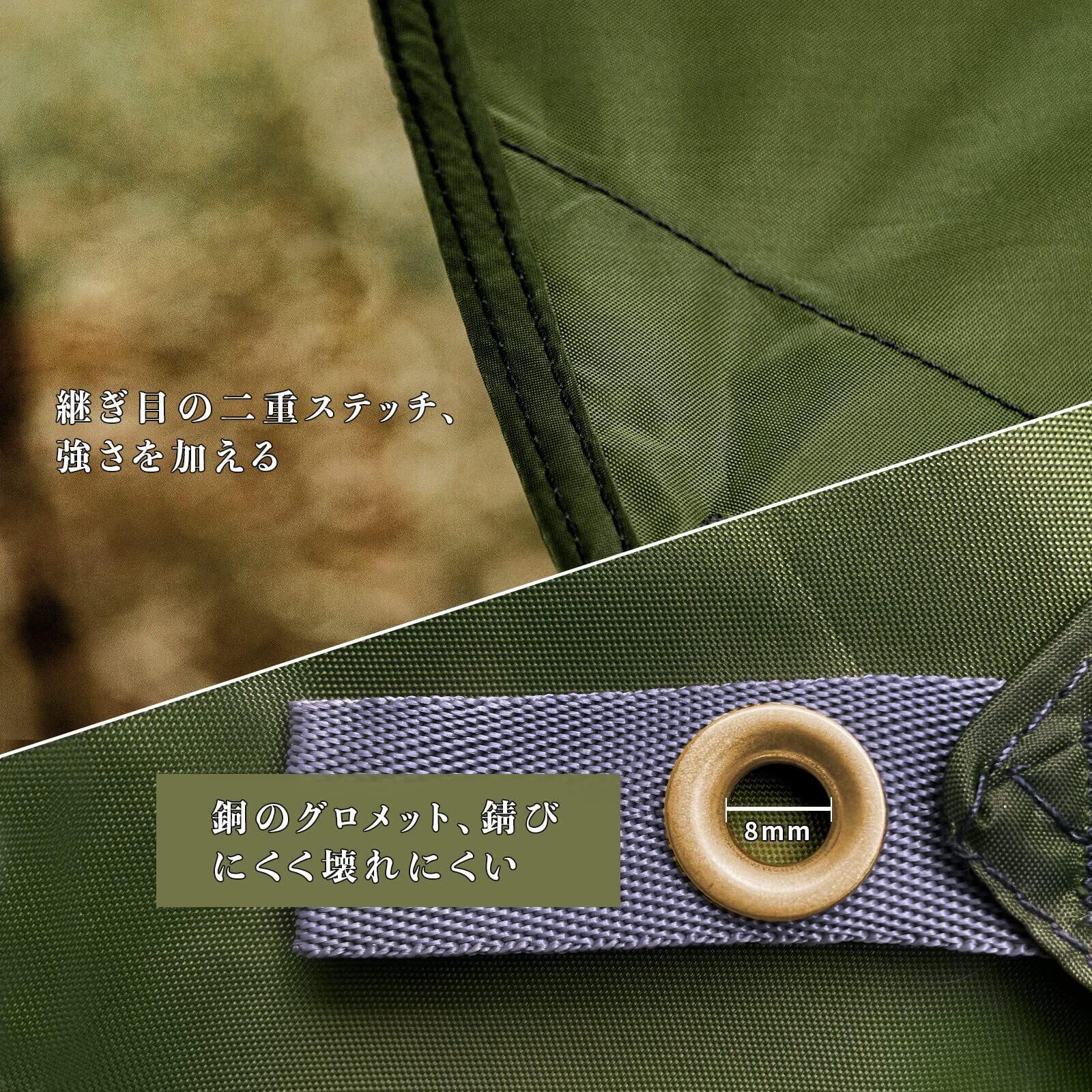 高い耐久性:210D高密度なポリエステルを採用、加えられた強さのための継ぎ目の二重ステッチ、コーナー部分はバータックで補強加工がされているので、耐久性に優れ、タープが緩んだり破れたりするのを防げます。固定バックルは8個あり、タープの安定性とセッティングの可能性を高めます。