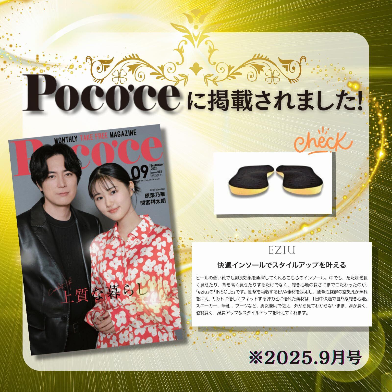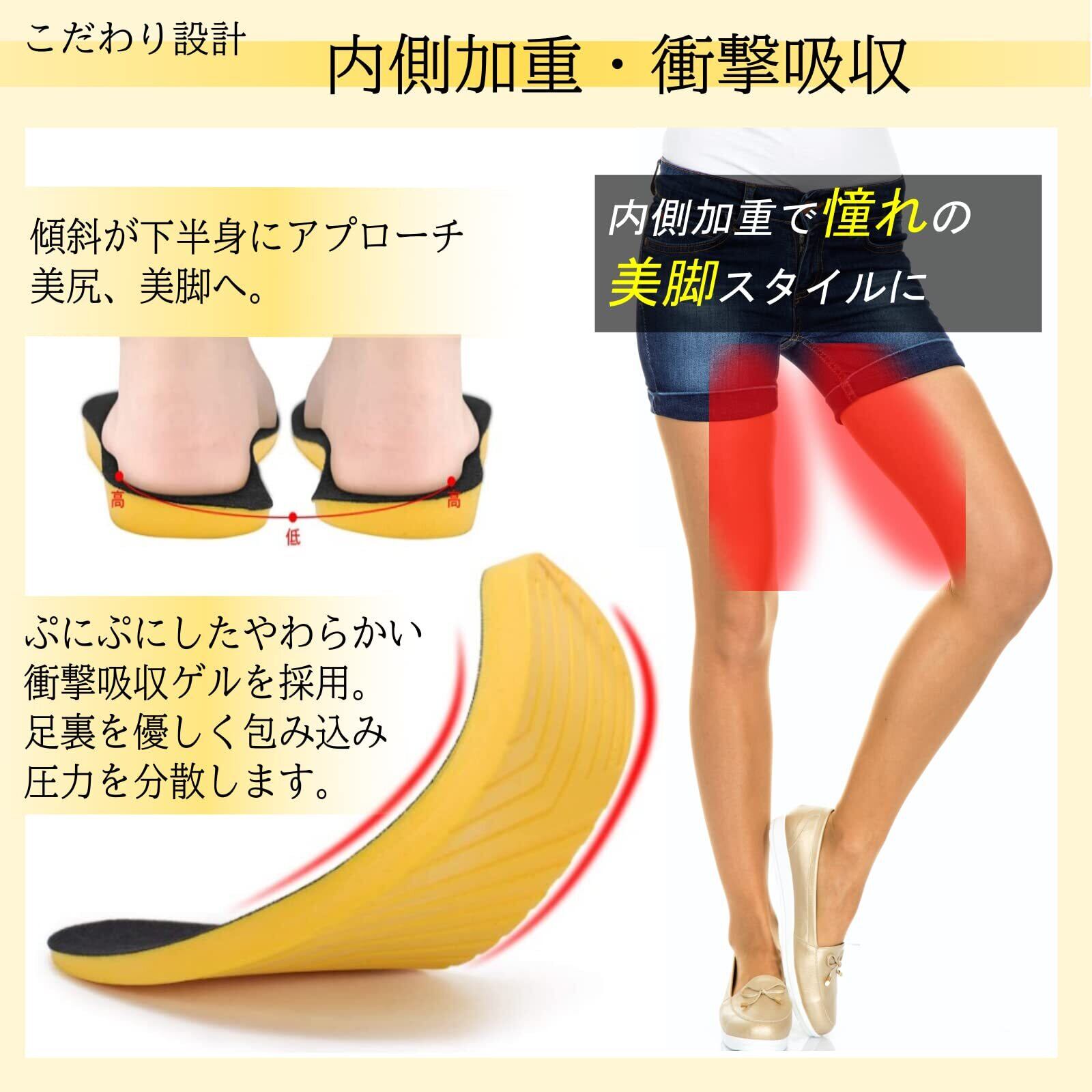 【Poco'ce掲載×専門家監修】 O型脚 傾斜付き 美脚 インソール 中敷き 肌に優しいベルベット素材 男女兼用 eziu (3組セット, M)