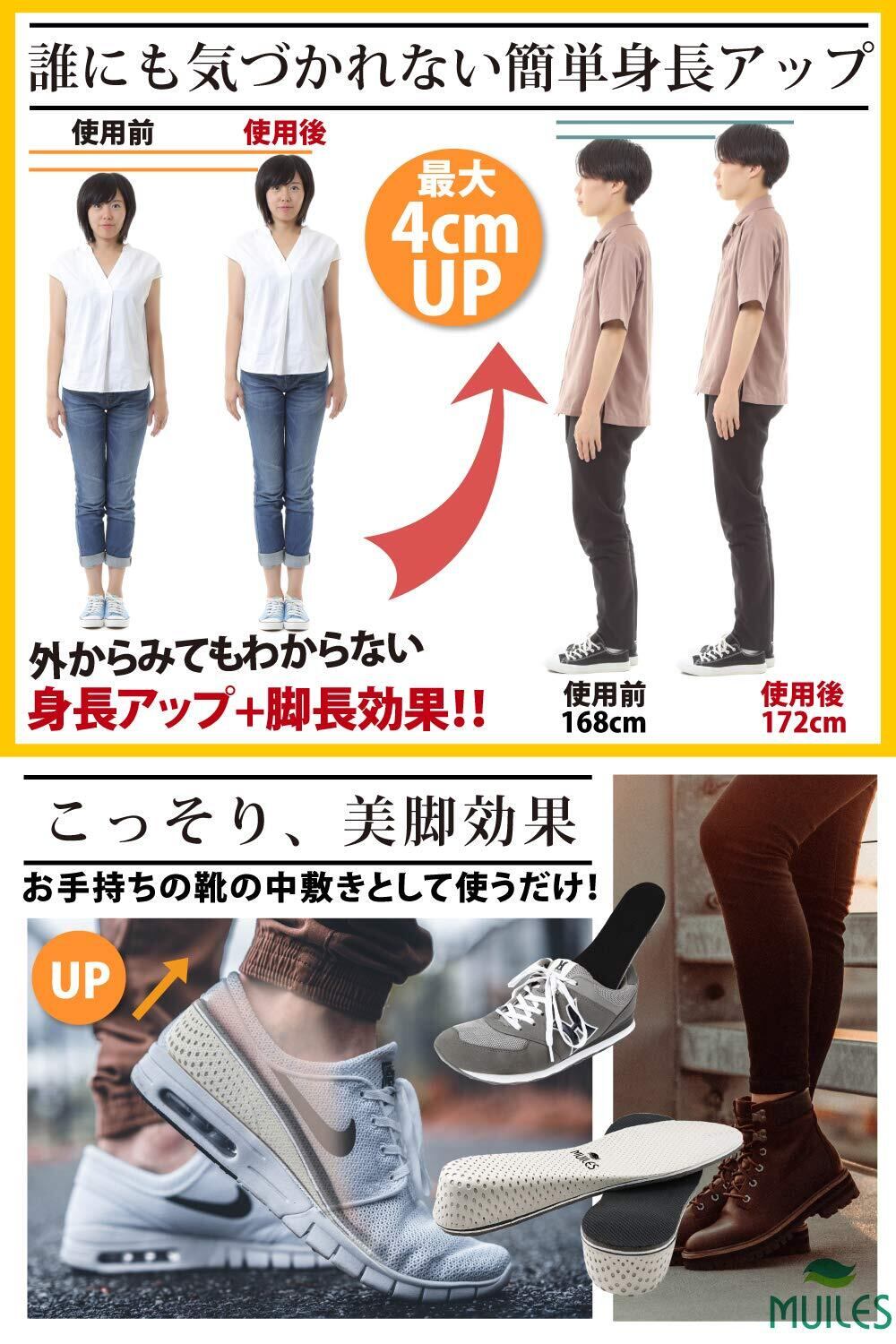 商品特長 身長が最大4cmアップ。身長を高く見せたい方、足を長く見せたい方におすすめです。