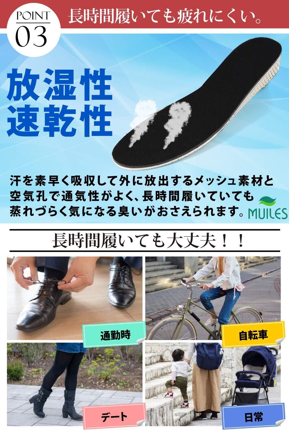 シークレットインソール 高さ3サイズ 【2cm/3cm/4cm】 インソール 身長アップ サイズ調整 (22.5cm~27.0cm) 通気性 疲れにくい 男女兼用 Muiles (3cm×1組)