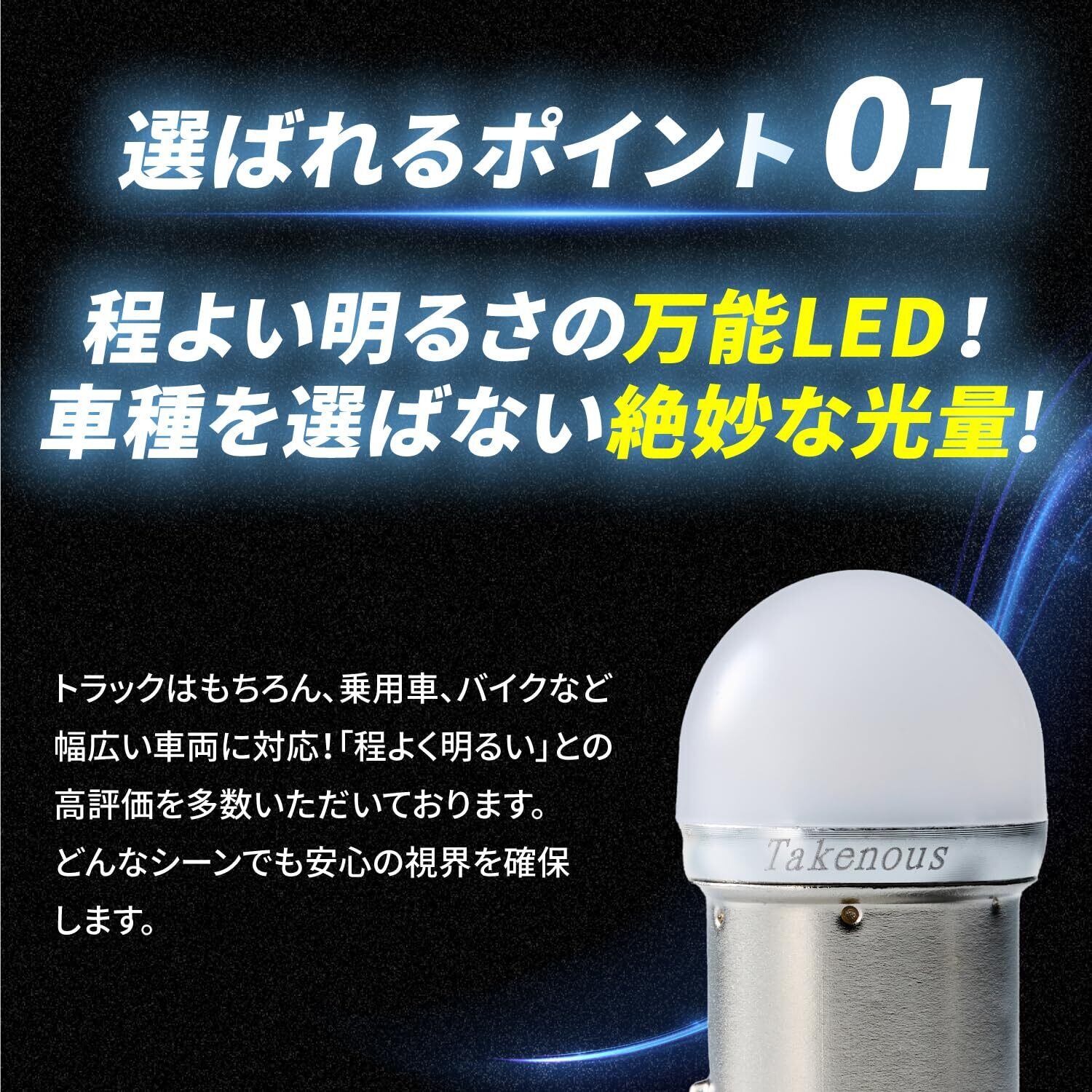【程よい明るさの万能LED! 車種を選ばない絶妙な光量】 トラックはもちろん、乗用車、バイクなど幅広い車両に対応! 「程よく明るい」との高評価を多数いただいております。どんなシーンでも安心の視界を確保します。