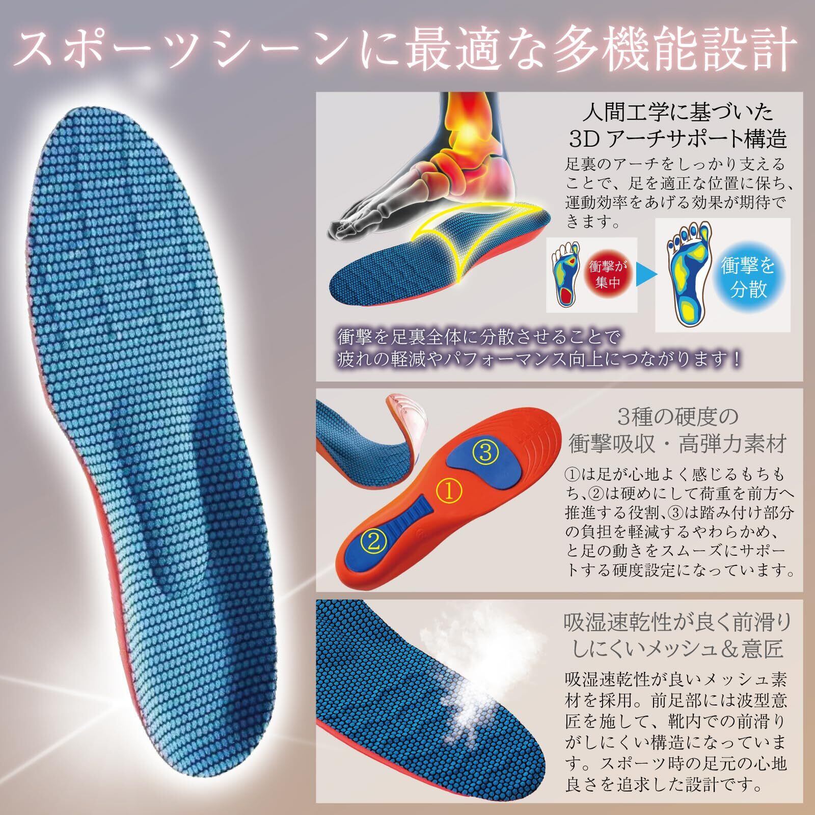 【プロサッカー選手監修】中敷き インソール 衝撃吸収 土踏まず インソール サッカー バスケ LL(26.5-27.0)