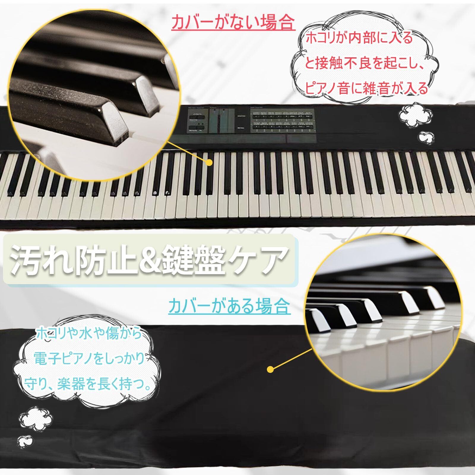 【取付簡単】:ピアノのキーボードをカバーして、紐を結ぶと取付できます。気軽に扱えますので、ピアノ時間がさらに楽しくなります。