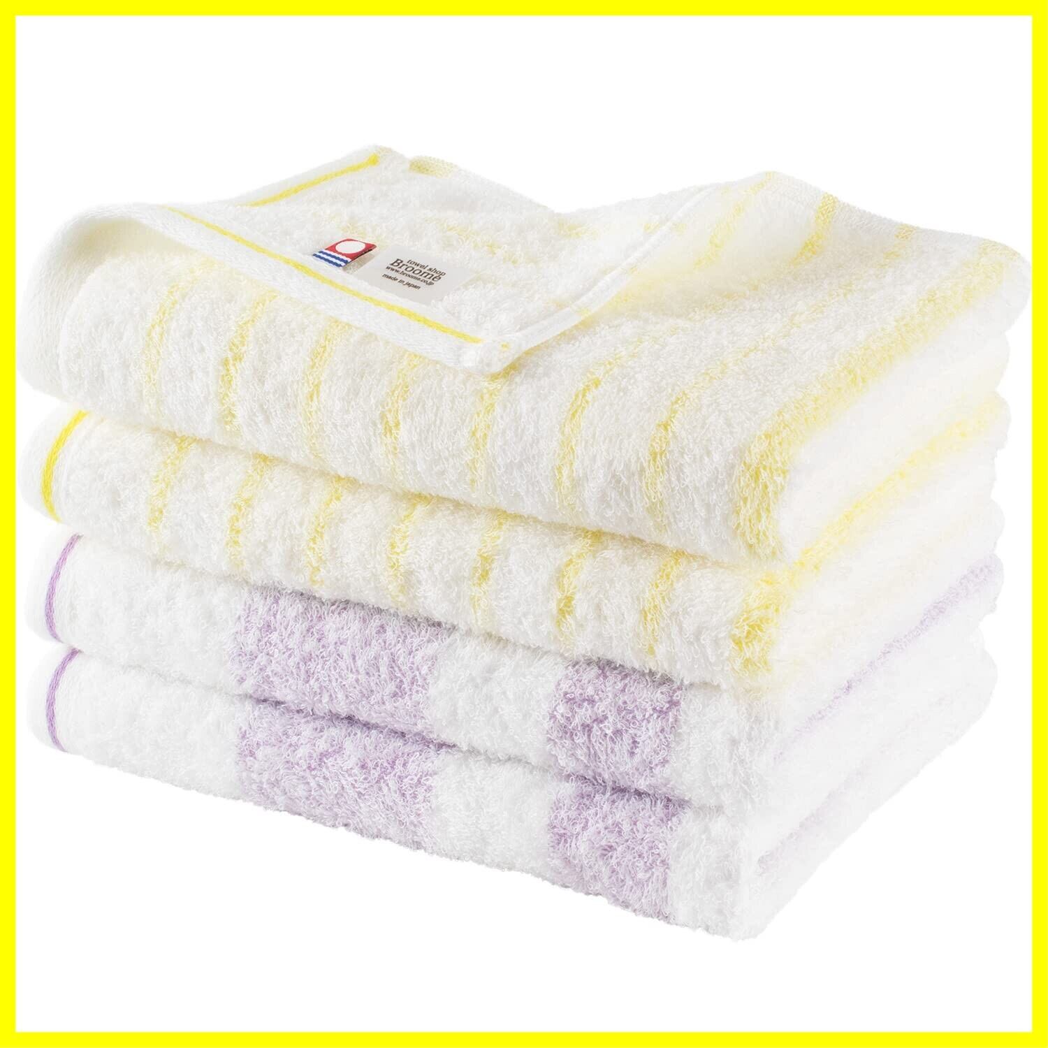 ブルーム 今治タオル 認定 フェイスタオル 4枚セット ナチュラルボーダー 吸水 速乾 部屋干し やわらか 綿100% 日本製 (イエロー・パープル)