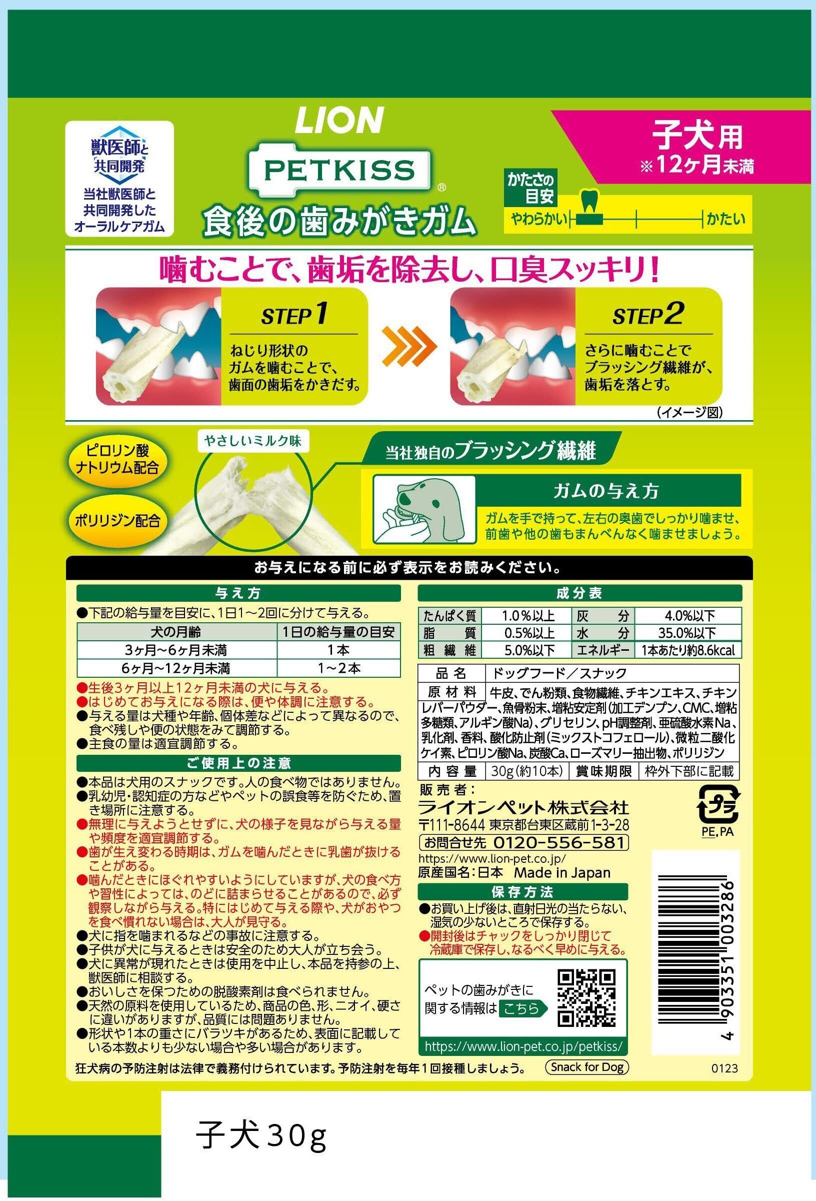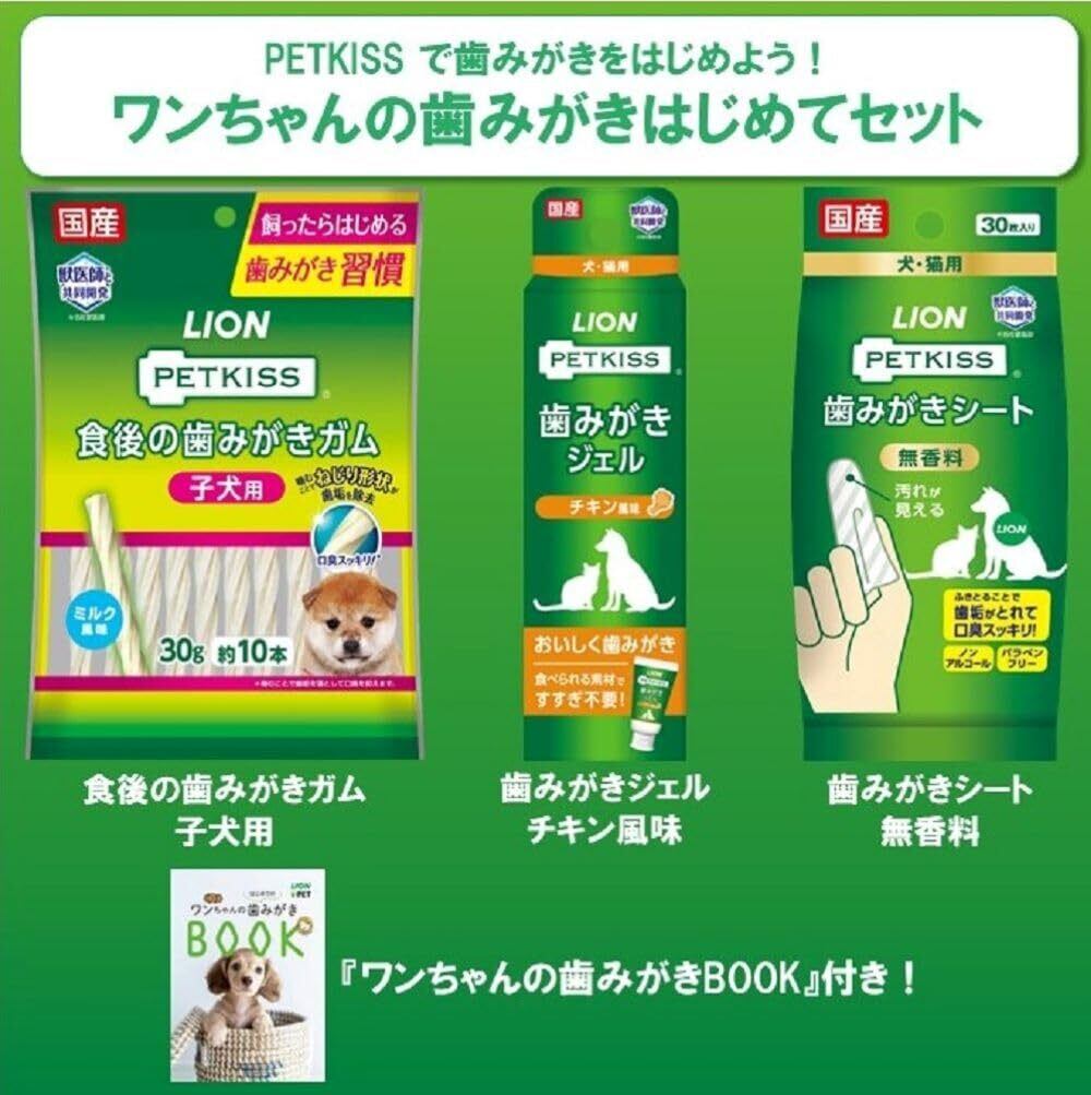 ライオン 犬の歯磨きはじめてセット ペットキッス PETKISS ワンちゃんの歯みがきはじめてセット 食後の歯みがきガム 子犬用+歯みがきチキン風味+歯みがきシート無香料+歯みがきBOOK
