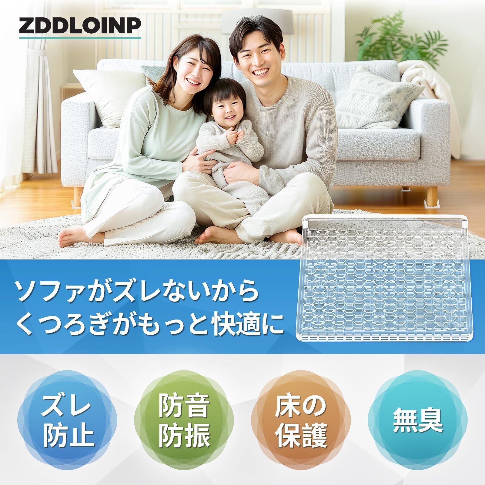 ZDDLOINP 滑り止めシート ソファ滑り止め 透明 4個入り キャスター 足 保護 家具・ソファー・ベッド・床・机・傷防止 防音シリコンマット 強力(角型 直径8cm 透明)