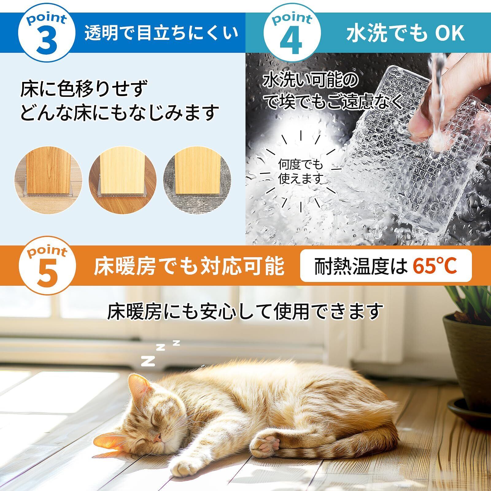 【適用範囲が広い】 クリアの滑り止めシートは、あらゆる家具や床と調和し、違和感なく使えます。様々な素材の床に適用でき、ソファーやベッドのみならず、椅子や机、金属の脚などにも使用できます。