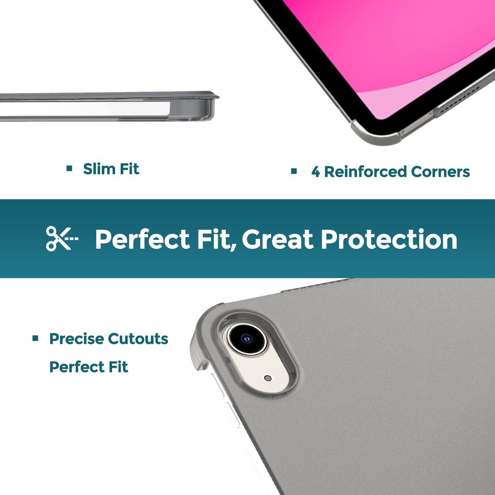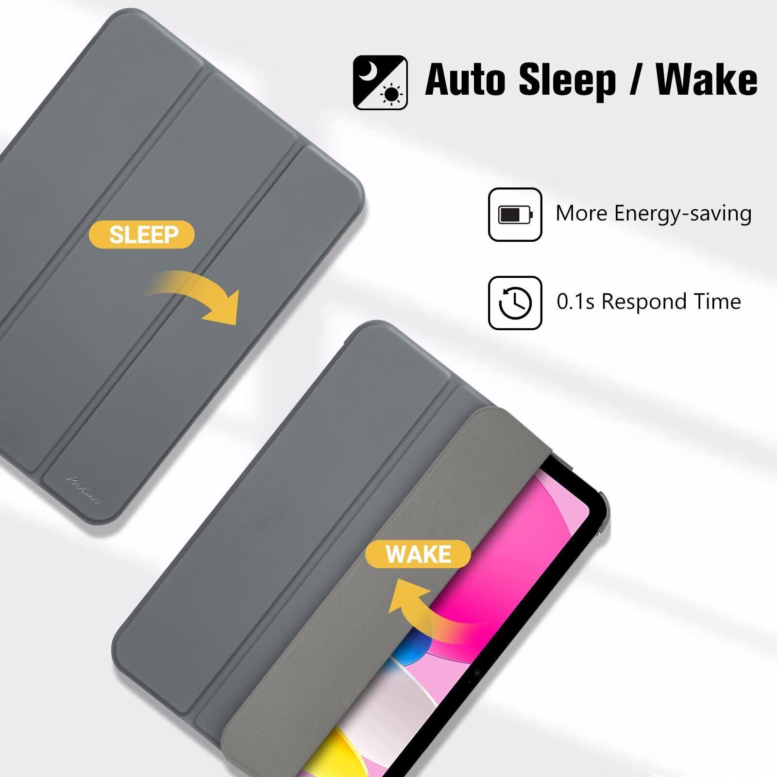 ProCase iPad 10世代 ケース 2022 10.9インチ A2696 A2757 A2777 軽量 耐衝撃 三つ折り スタンド スマートカバー(グレー)