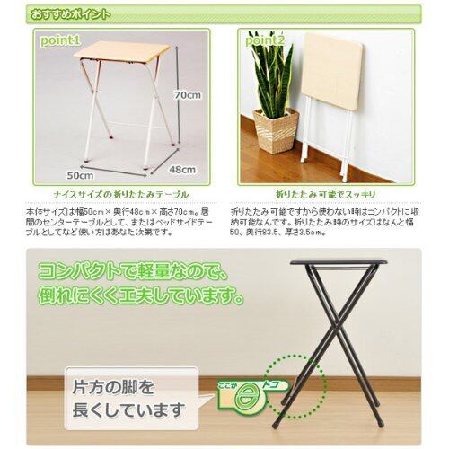 ●折りたたみ式のミニテーブル●ダイニングの補助机としても活躍●たためば約3.5cm。すきまに収納可能