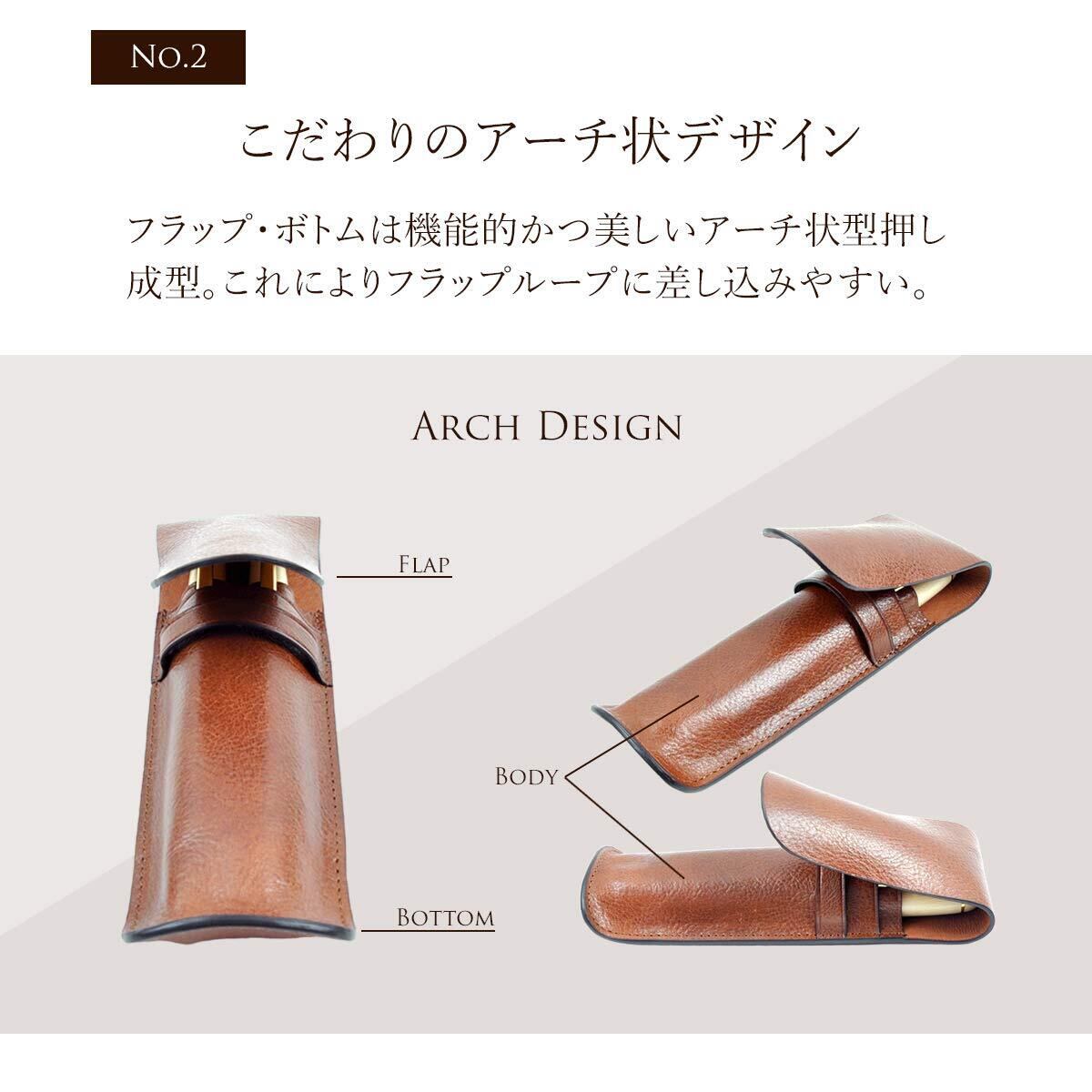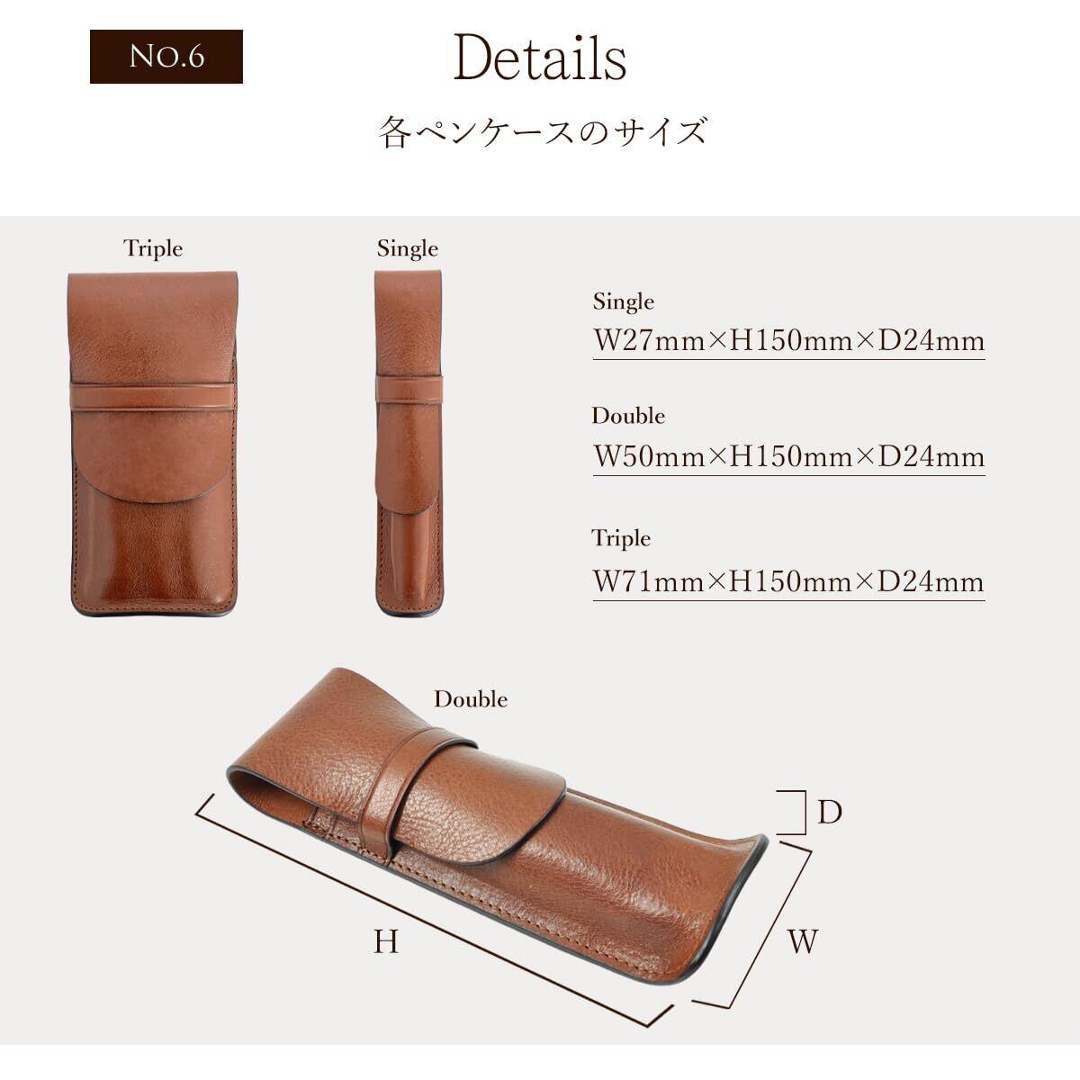 [推奨ペンサイズ] 長さ: 11cm ~ 15cm 太さ: 0.9cm ~ 1.3cm [1本差しサイズ] 縦 150mm × 横 27mm × 厚 24mm 重さ 17g [2本差しサイズ] 縦 150mm × 横 50mm × 厚 24mm 重さ 31g [3本差しサイズ] 縦 150mm × 横 71mm × 厚 24mm 重さ 48g [素材] 本牛革 イタリアンレザー