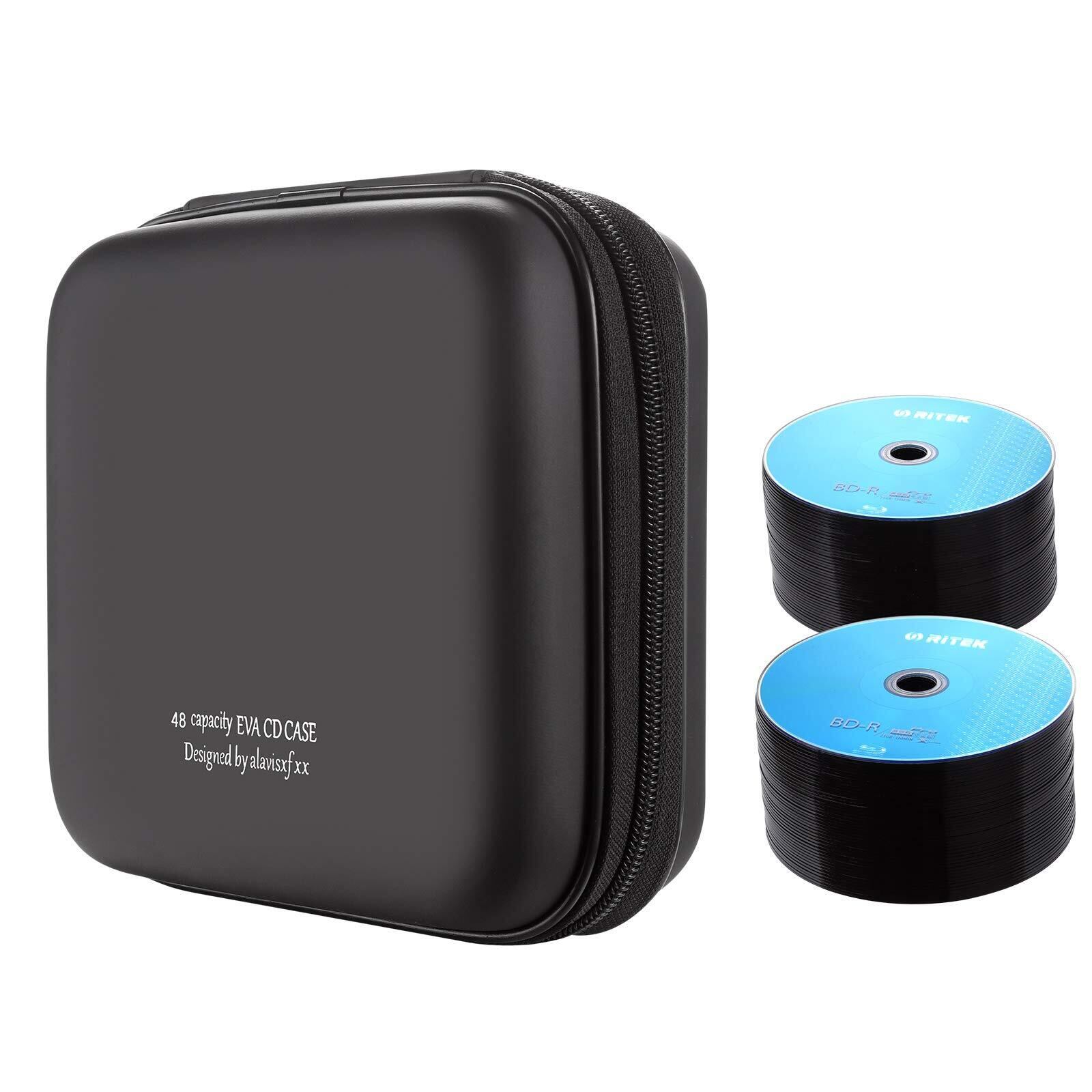 LIOVODE 48枚収納 CDケースポータブルEVA blu-ray ディスク収納ケース 大容量 DVD/VCD 収納 (48枚, ブラック 48)