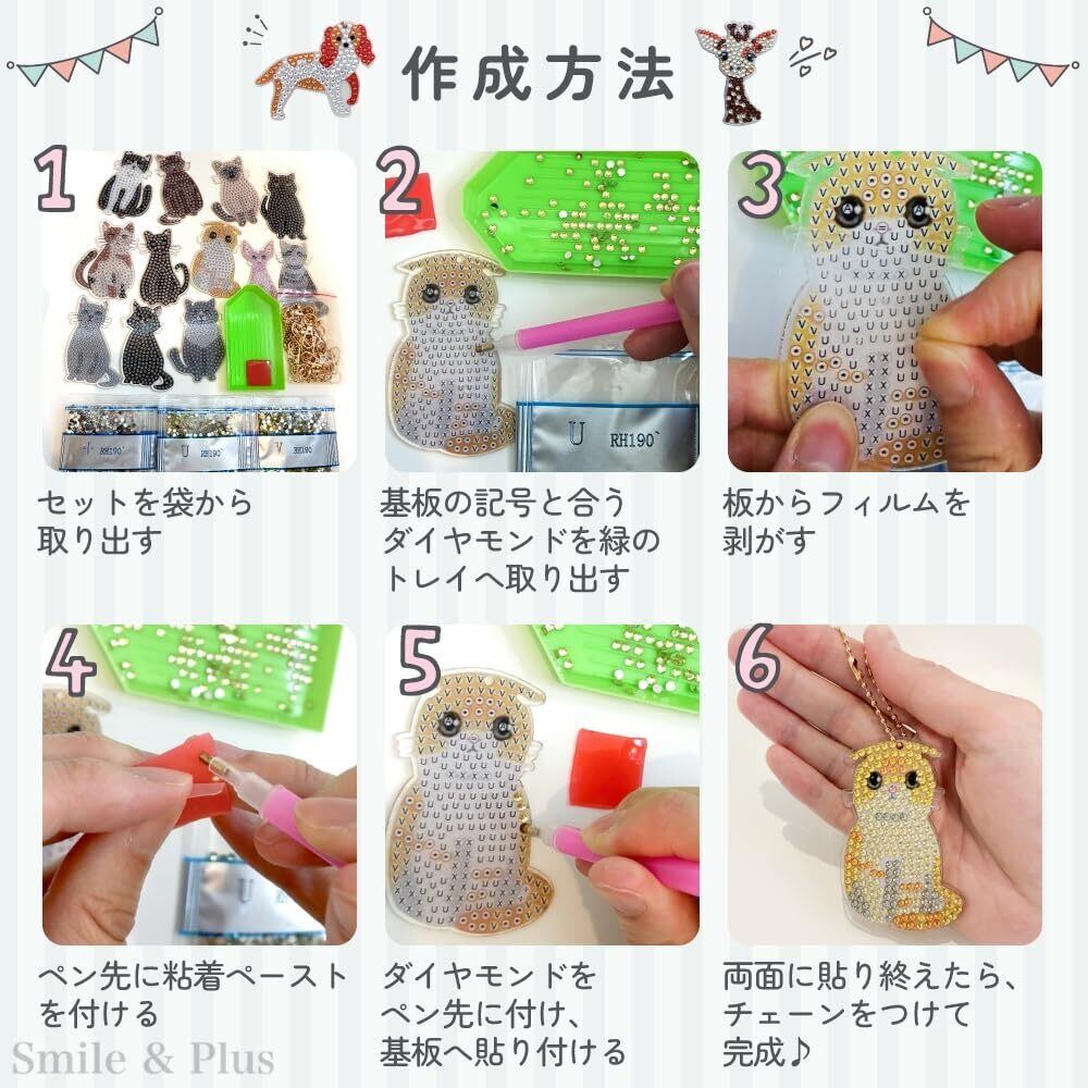 LIXTONE ダイヤモンドアート キーホルダー 手作りキット 女の子 アクセサリー ペンダント (猫12個(ペン・トレー2セット、チャック袋入))