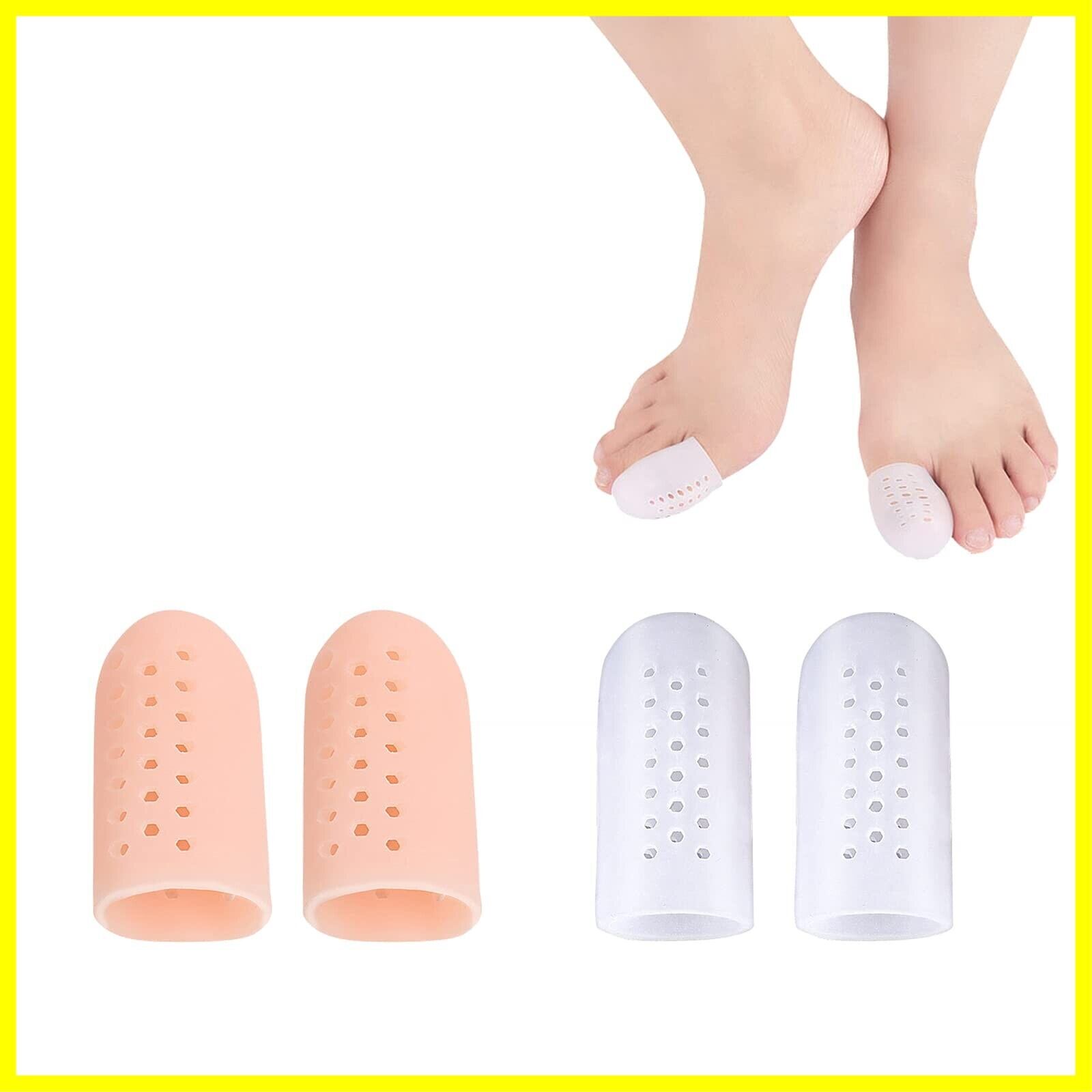 【使いやすい】ホワイトと肌色2ペア(4個)、足指保護キャップのサイズは、長さ6cm、直径2.4cm、厚さ0.2cmです。柔らかいシリコン製で、良好な伸縮性があり、ほとんどの足指にぴったりフィットし、通常の着用にはまったく影響がありません。