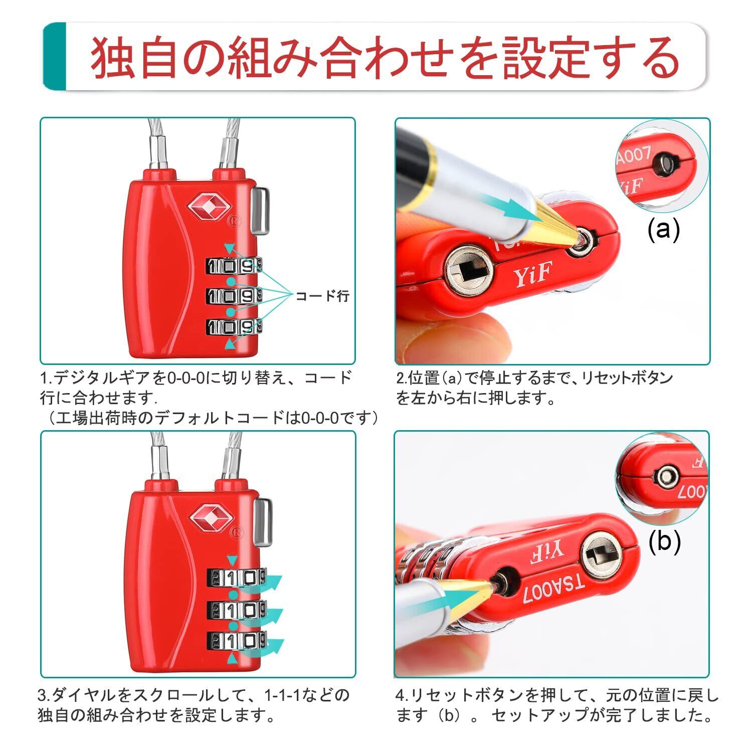 ▶3つのダイヤル組せ:使いやすい、自由に設定することが可能で、暗証番号の変更設定ができます。元のナンバーは0-0-0です