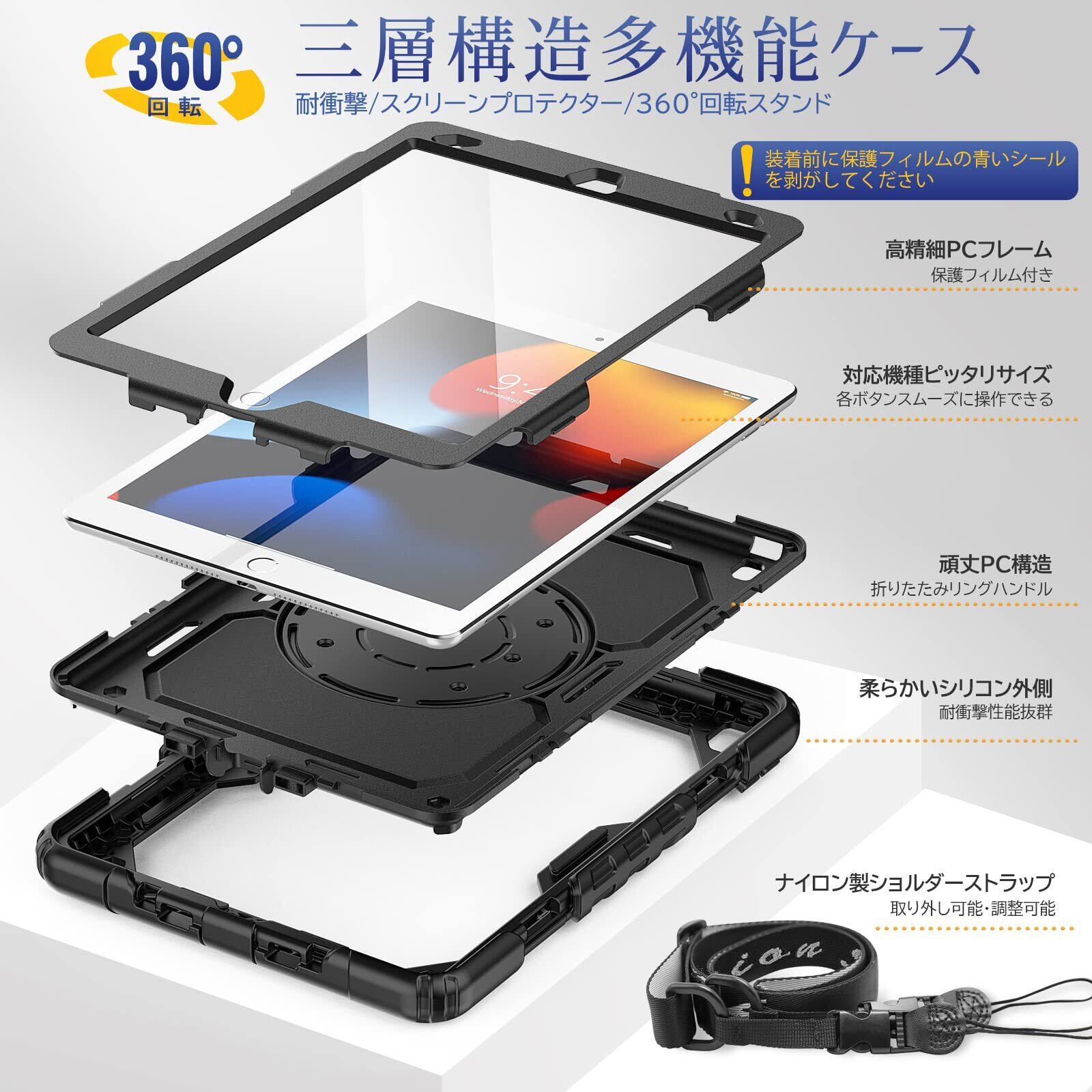 【ショルダーストラップ】:長さ調節できる、首や肩に掛けるタイプのショルダーストラップ大事なiPad第9世代/第8世代/第7世代を落とさずに操作に集中できます。