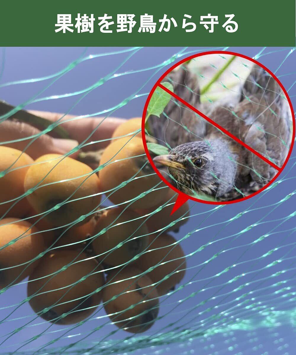 ASPALAND 鳥よけ 防鳥 園芸 ネット 農業 果樹 防鳥 網 カラスよけ 鳥害対策 伸縮性ある メッシュ グリーン (幅5m×長さ10m)
