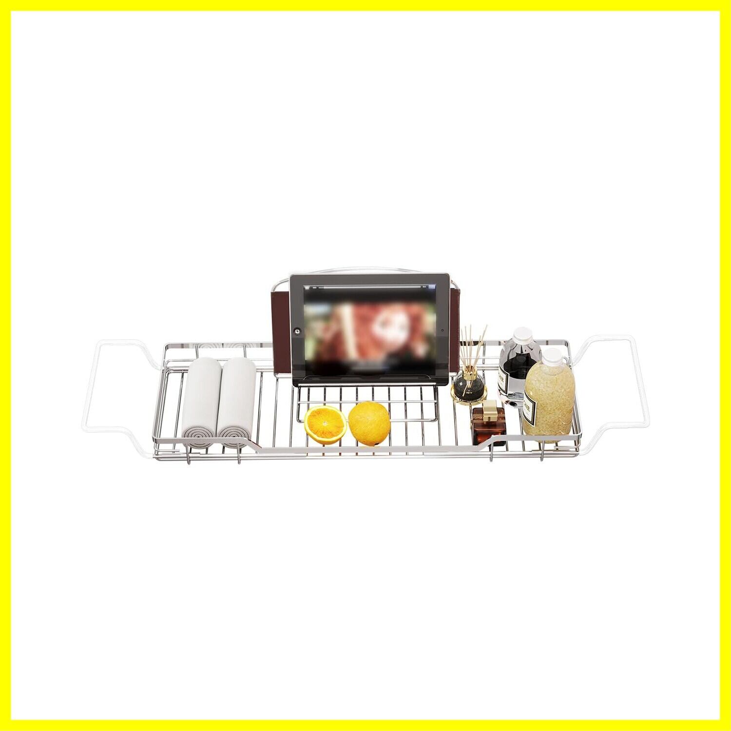 YQh浴槽トレイ、浴槽伸縮収納棚、浴室テーブル、浴室用品収納棚、304ステンレス、通気性にカビが発生せず、携帯電話、タブレットなどを置くことができる(伸縮サイズ:67.5-98 cm)