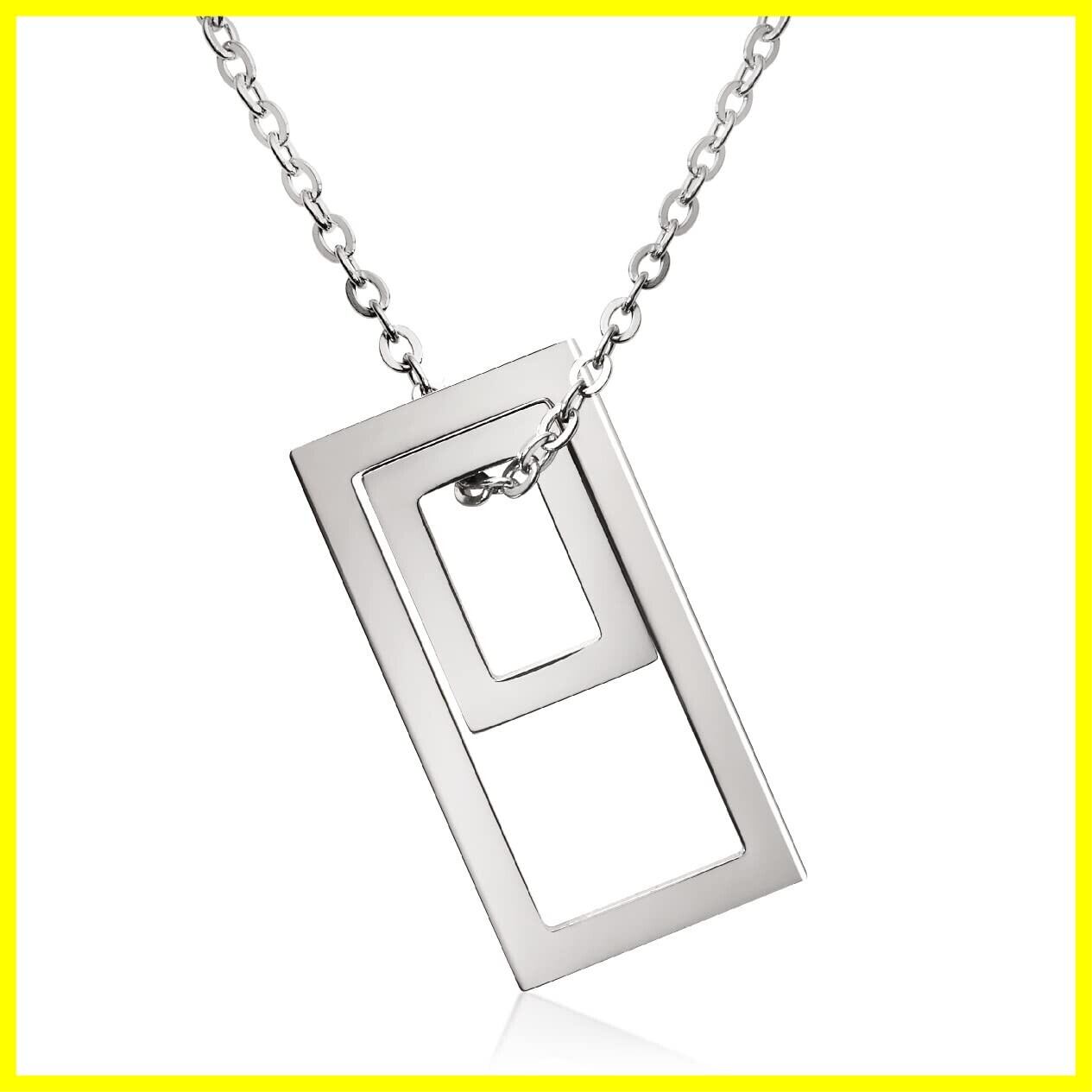 シンプルでオシャレなデザイン、ちょうど良い存在感が魅力のシンプルネックレスです。長方形を2つ重ねたネックレスは、大小のパーツが揺れて素敵な動きを演出します。シンプルなデザインですが存在感があります。デザイン性をお求めの方に人気です。