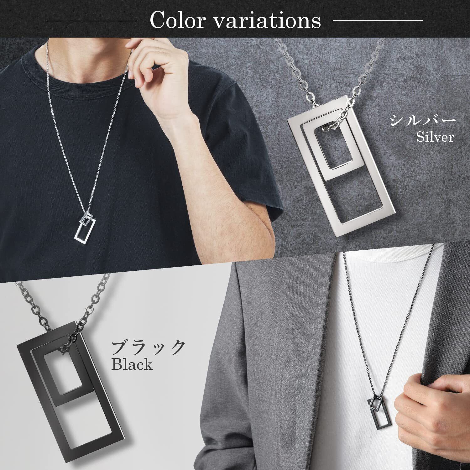 [YAHANE] ネックレス メンズ ペンダント シンプル 316L サージカルステンレス アクセサリー レクタングル ブラック シルバー トップ ジュエリー アレルギーフリー