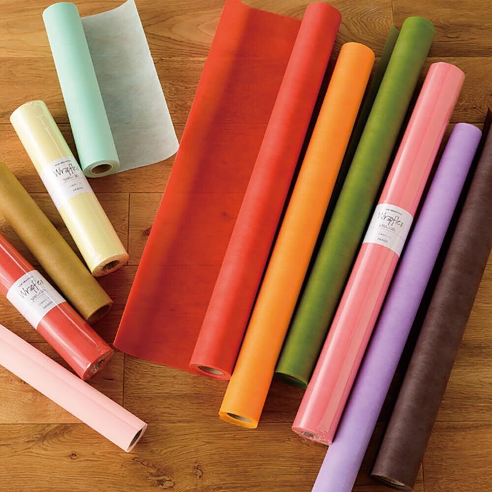 ラッピングに使いやすい色合いを10色ご用意しました。大きな商品も包める幅65cm。適度な厚みでハリがあり、肌触りの良い不織布です。ブーケなどにオススメです。