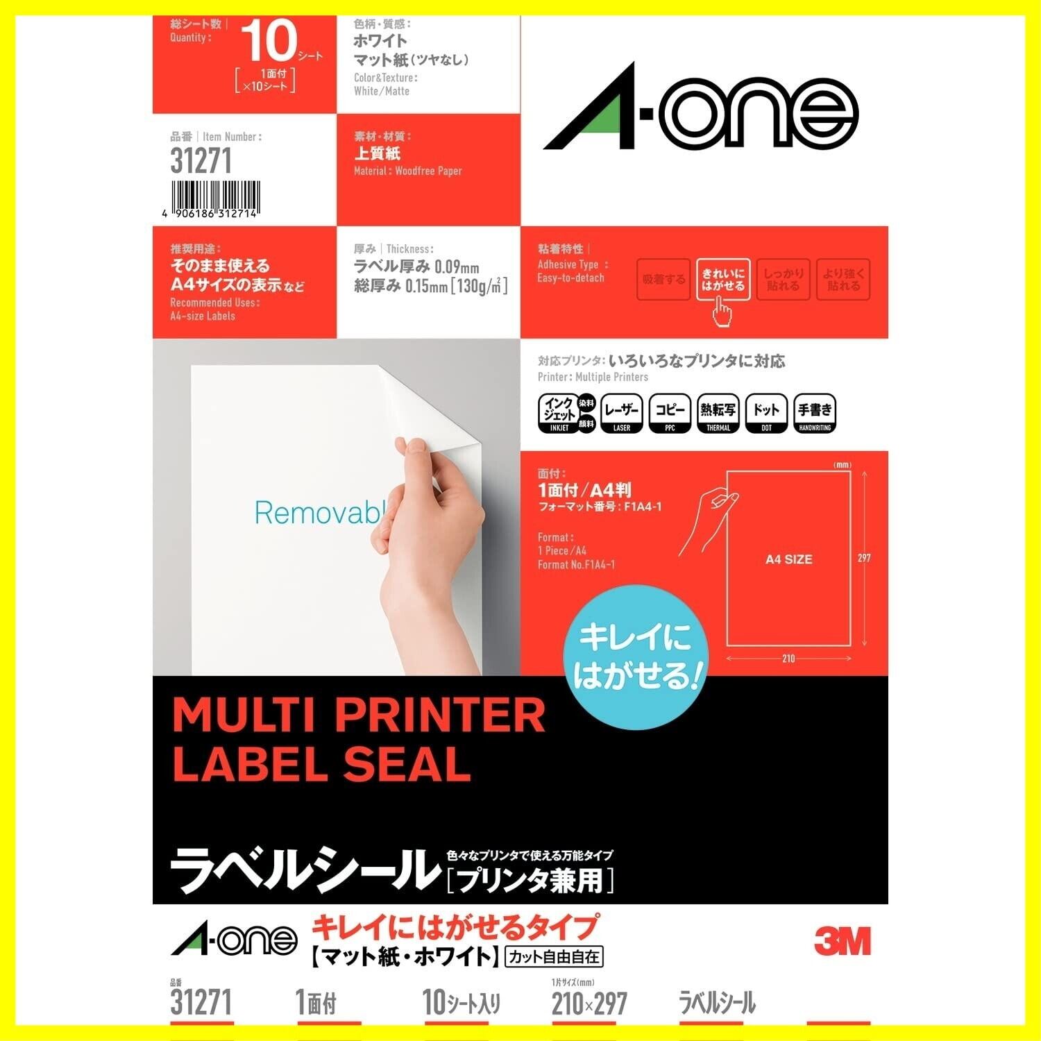 エーワン ラベルシール NYPラベル キレイにはがせる マット紙 ノーカット 10シート 31271 ホワイト