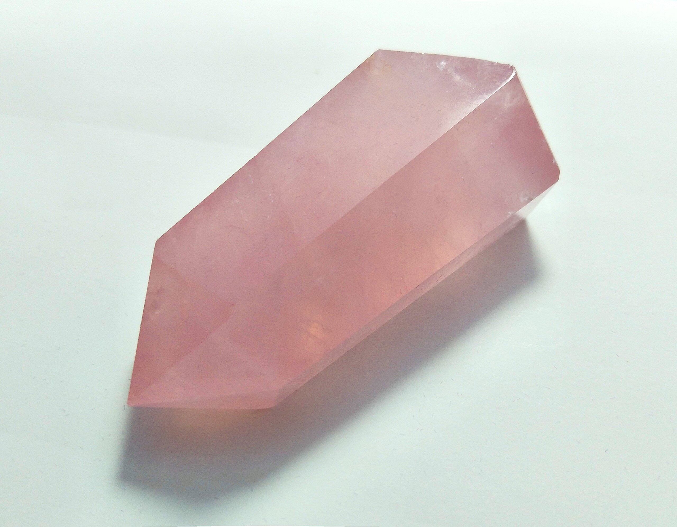 ヒーラーの天然石パワーストーンローズクォーツヒーリングワンド 先のとがった多面体仕上げ仕様のクリスタル棒で 癒し瞑想とチャクラ強化 エネルギーヒーリングなどに最適