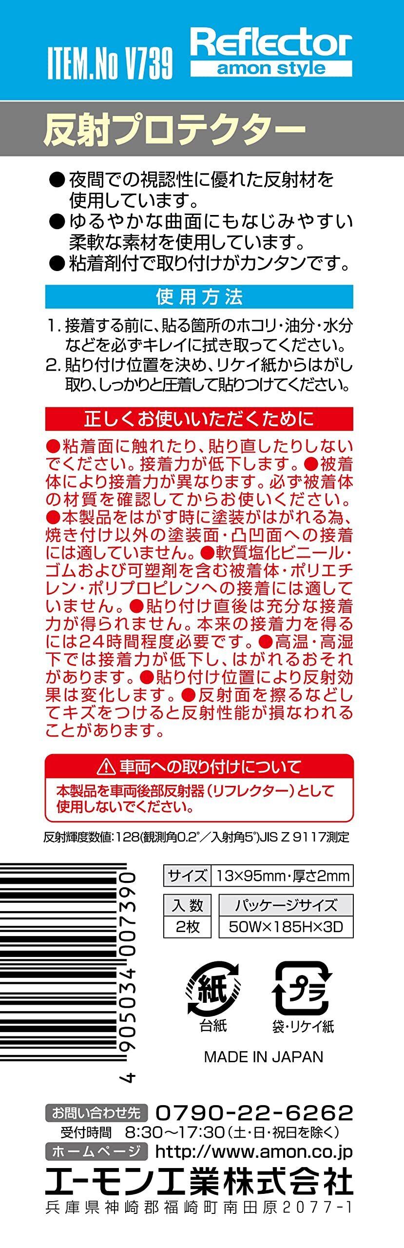 エーモン(amon) 反射プロテクター(レッド) 粘着剤付 幅13mm×長さ95mm×厚さ2mm 2枚入 夜間の視認性向上にも バイク オートバイ 自転車 V739