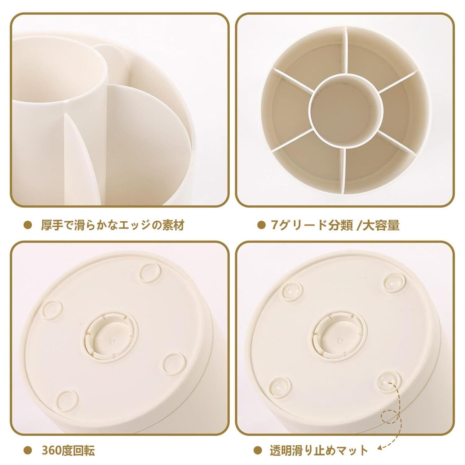 ペン立て 360度回転 ペンホルダー ペンスタンド 大容量 ぺんたて 7グリード分類鉛筆たて 多機能 文房具収納ボックス 化粧品 家庭生活用 収納ボックス オフ(ホワイト)